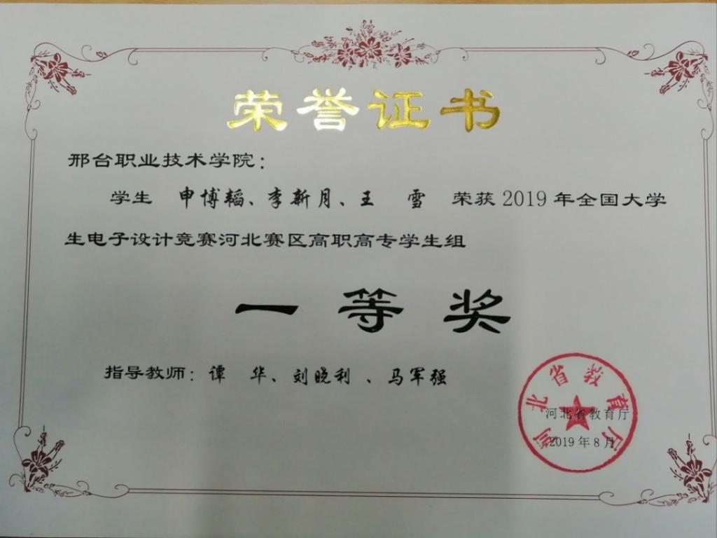 微控制技术守敬创新工作室成立于2012年,该工作室主要致力于培养学生利用微处理器控制外围器件,实现数据的传输与处理,从而实现设备的智能化与自动化。培养学生完成任务的方案设计、硬件设计、软件设计以及产品的组装与调试等完整过程的能力,掌握常用器件的检测、使用、驱动程序的编写、实验设备的使用以及工具软件的使用等技能,为将来的就业提供支持与帮助。该工作室成立以来,有50余人参与到工作室的培养中来,其中有15人经过在工作室中锻炼学习,成绩非常突出,现就职于企业,主要从事电子产品的研发与维护工作岗位,获得了企业的肯定与认可。其中2013年组队参加全国大学生电子设计大赛获得河北省三等奖;2017年组队参加全国大学生电子设计大赛获得河北省二等奖。2019年组队参加全国大学生电子设计大赛获得河北省一等奖。2021年、2023年参加全国5G全网建设技术职业技能大赛获河北省二等奖。