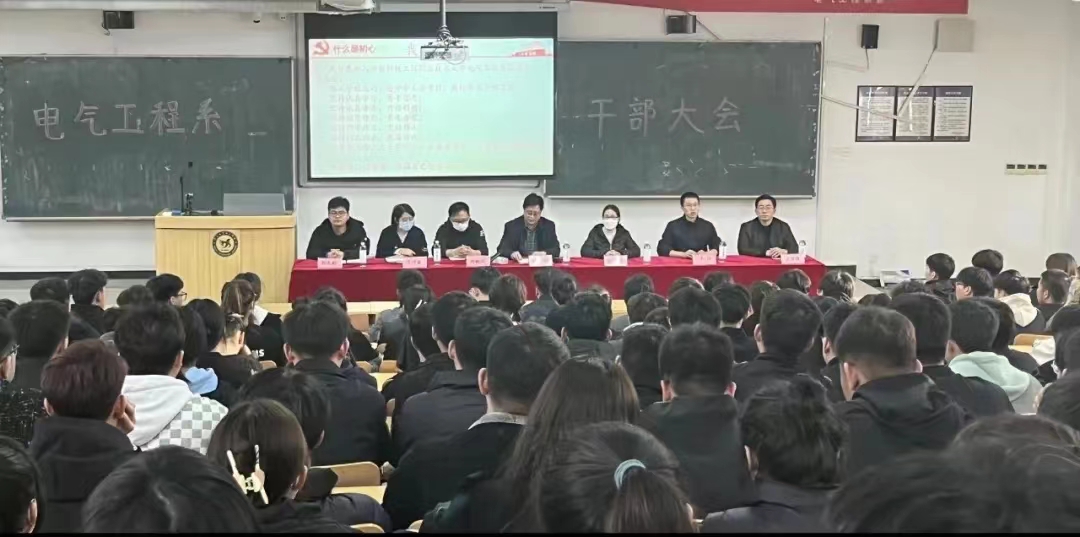 3月1日下午,电气工程系于C2-1召开新学期学生干部大会,系党总支书记艾立新、学生党支部书记刘鹤年、团总支书记郭杰彬、全体辅导员老师出席本次大会,全体学生干部到场参加。