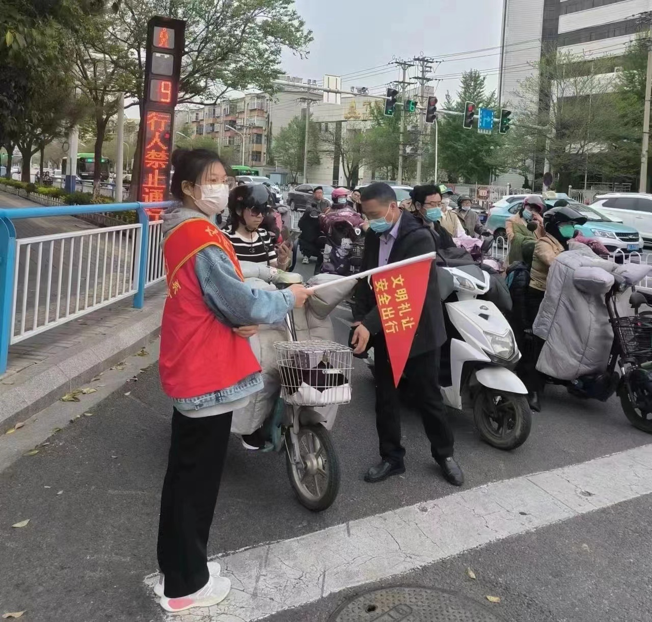 为切实增强居民文明交通意识,营造安全、和谐的出行环境,4月10日至4月24日,电气工程系在冶金路和团结大街交叉口开展四月“文明交通,安全出行”志愿服务活动。本次活动共有30余名志愿者参加,宣传了文明交通理念,倡导文明行为,以实际行动展现我系学子的风采。