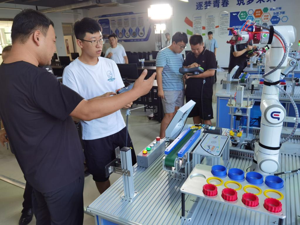 培训内容主要围绕本科课程相关的协作机器人基本操作、PLC主控系统控制、机器人装配流水线编程运行、机器人画像系统编程应用、虚拟仿真软件操作编程等内容展开,旨在帮助老师们全面掌握协作机器人的操作编程和系统应用方法。所有老师都顺利完成了培训课程并通过各个模块的考核任务,最终取得了培训证书。