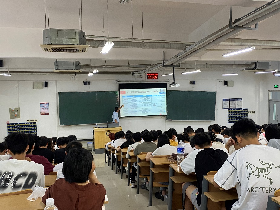 主讲人王涛从通信技术的起源与演进,当代5G网络对社会生活与经济的影响,ICT主要就业岗位分析以及未来通信发展趋势等方面进行讲述。交流会上,同学们沉浸其中,全神贯注地聆听通信专业的时代进展。