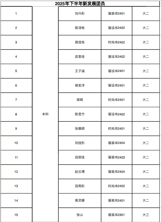 年下半年新发展团员名单公示:经研究,现将刘兴彤等