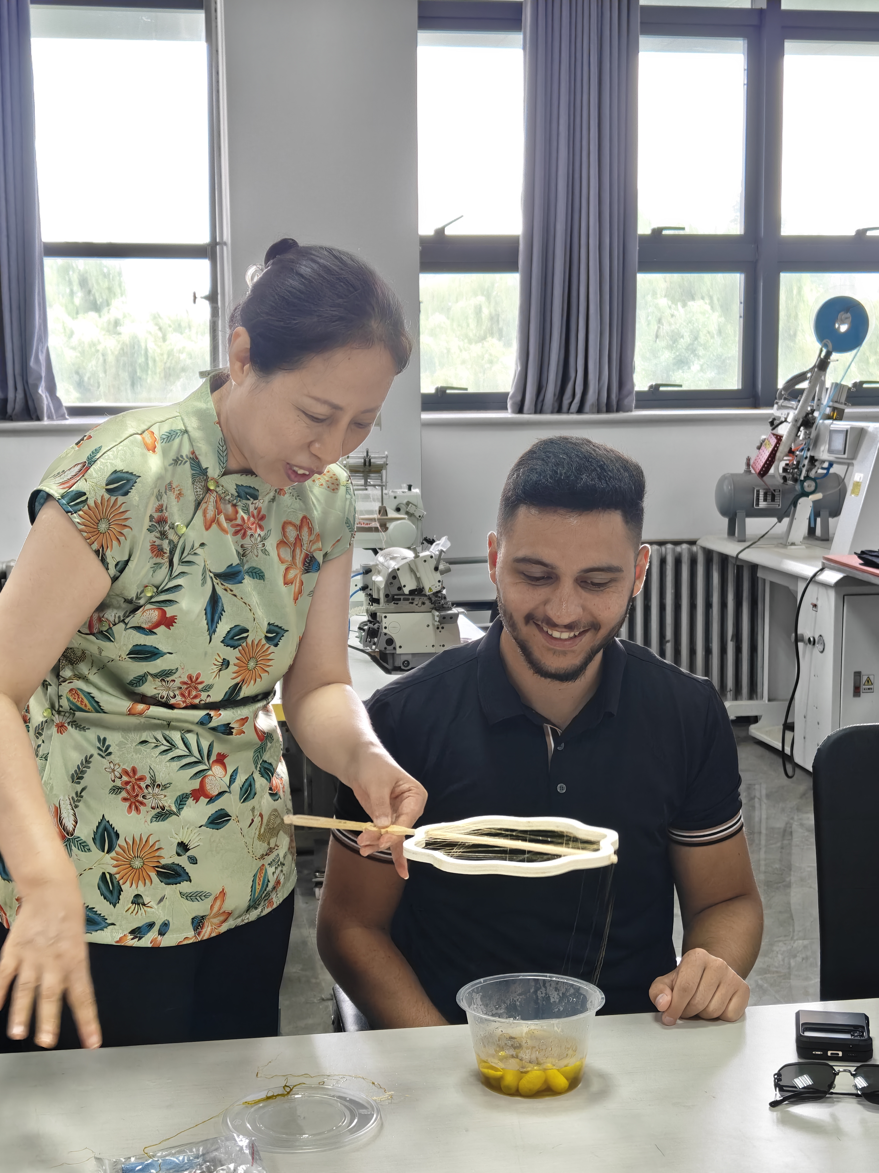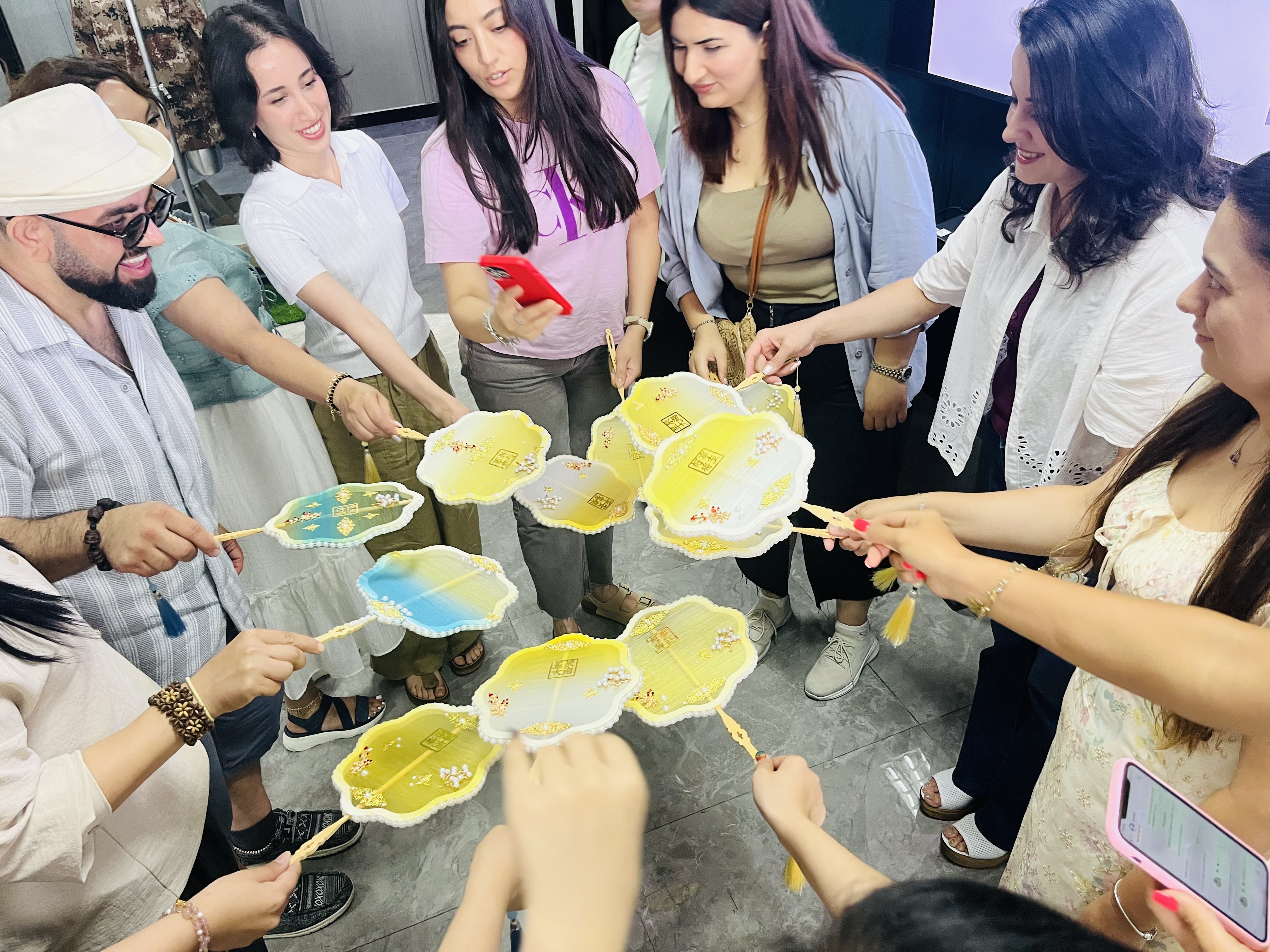 中外教师通力合作,在动手实践中深入交流,不仅感受到传统技艺的独特魅力,也增进了彼此之间的理解与友谊。代表团成员纷纷表示,蚕丝团扇的制作过程令人震撼,中国文化的深厚底蕴给他们留下了深刻印象,此次体验收获颇丰。