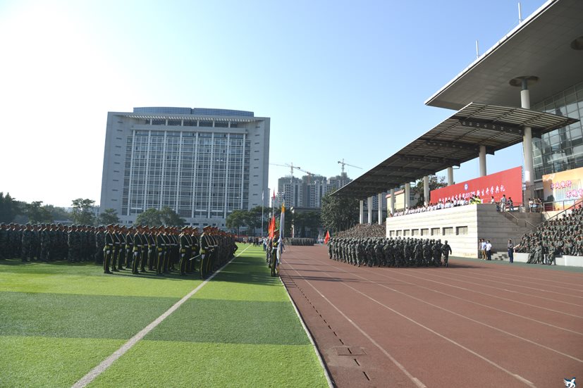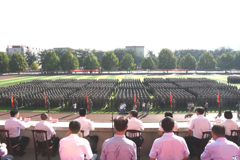 开学典礼在庄重喜庆的气氛中闭幕。随后,学院领导与全体军训教官合影留念。