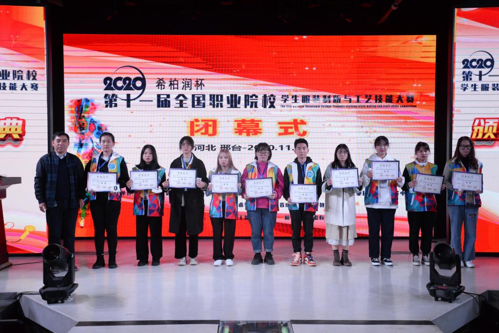 11月1日,学院副院长李贤彬出席闭幕式并代表学院致辞。大赛裁判长庹武教授对参赛作品从作品设计、制版、工艺及生产安全等方面作了精彩点评,希望未来会有越来越多的参赛作品实现由产品向商品转变。倪阳生会长在总结讲话中指出,大赛作为一个学生技能展示、教师交流的平台,涌现了越来越多的优秀作品;通过大赛的举办,促进了学生专业技能和职业素养的提升,为企业培养了大量高素质技术人才。