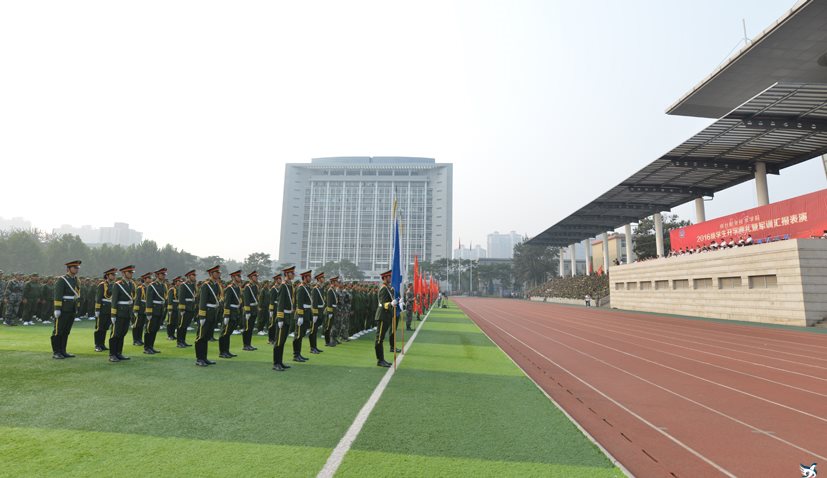 开学典礼在庄重喜庆的气氛中闭幕。随后,学院领导与全体军训教官合影留念。