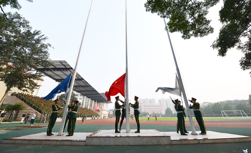 典礼在庄严的国歌声中拉开帷幕,鲜艳的五星红旗在两面校旗的护卫下,随着雄壮的国歌声冉冉升起,高高飘扬在校园上空。升旗仪式结束后,在院国旗护卫队的带领下,2016级新生军训分列式汇报表演正式开始,各系方队在雄壮的军乐声中依次经过主席台,接受学院领导的检阅,5000余名军训新生队列整齐,步伐一致,口号响亮,意气风发,展现出良好的军人素养、严谨的思想作风、奋发向上的精神风貌和朝气蓬勃的青春气息。