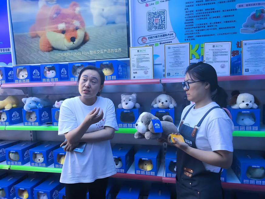 走进河北海发玩具有限公司,最新推出的 AI 互动玩偶展区格外引人注目。企业负责人康静总经理拿起一款 AI 小狗玩偶向老师们介绍:“这款玩偶内置了智能语音交互系统,搭载 AI 情感识别技术,能根据孩子的语音、表情变化,做出不同的回应和动作,就像有了‘生命’一样。”