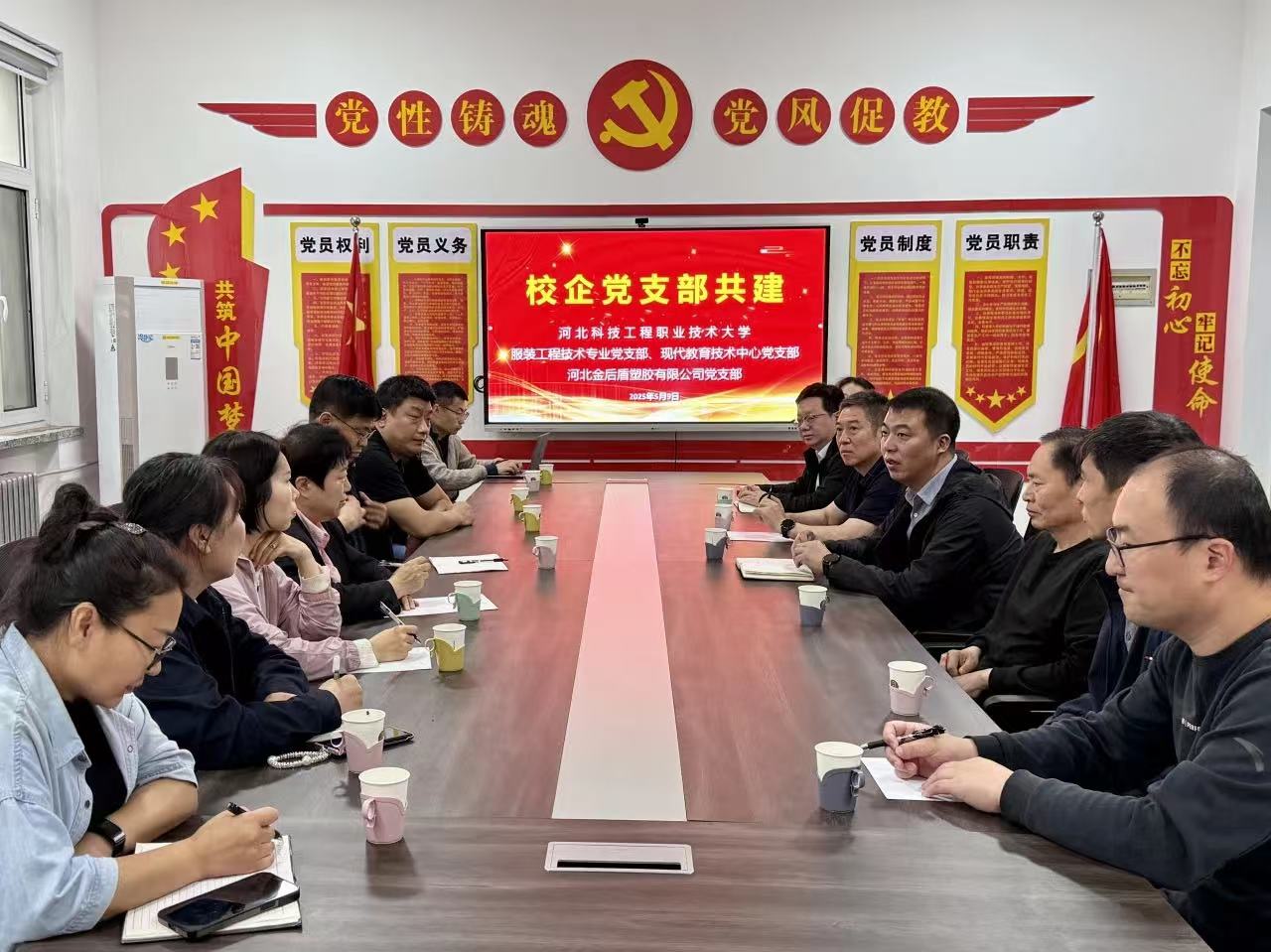为深入贯彻落实党的二十大精神,深化校企合作内涵,推动党建与业务深度融合,2025年5月9日,服装工程系服装工程技术专业党支部、现代教育技术中心党支部与河北金后盾塑胶有限公司党支部在我系103会议室举行支部结对共建启动仪式。