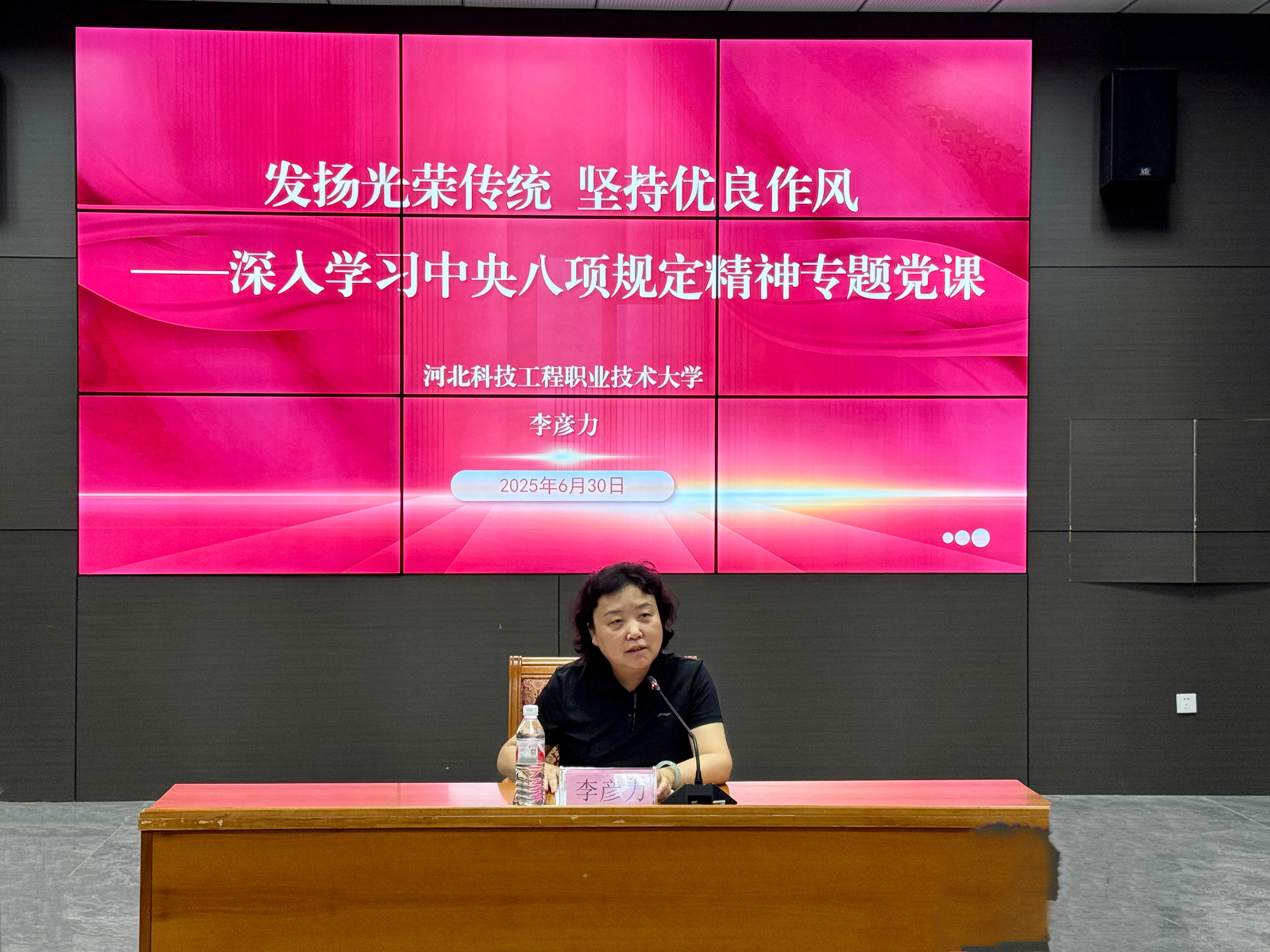 一是回溯历史,李彦力副书记系统梳理了百年党史中作风建设的历史脉络与宝贵经验,展现了我党在不同历史时期淬炼优良作风的坚定决心;二是立足现实,深刻剖析了当前“四风”问题特别是隐形变异新表现的典型案例,警示全体教师要引以为戒;三是总结成效,系统阐述了深入贯彻中央八项规定精神以来的显著成效和宝贵经验;四是聚焦实践,重点结合教师队伍立德树人的根本职责,阐明了全体教师要将中央八项规定精神作为育人工作的实践路径和行动指南。五是强化担当,李彦力副书记特别结合新华社重要文章精神,深刻阐释了党员教师作为立德树人的先锋力量,必须在锤炼过硬作风中勇担“中华民族主心骨”的时代重任。
