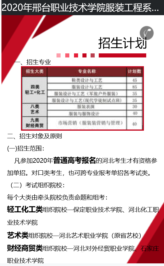 2020年服装工程系共有7专业(方向)列入普高单招计划详细如下: