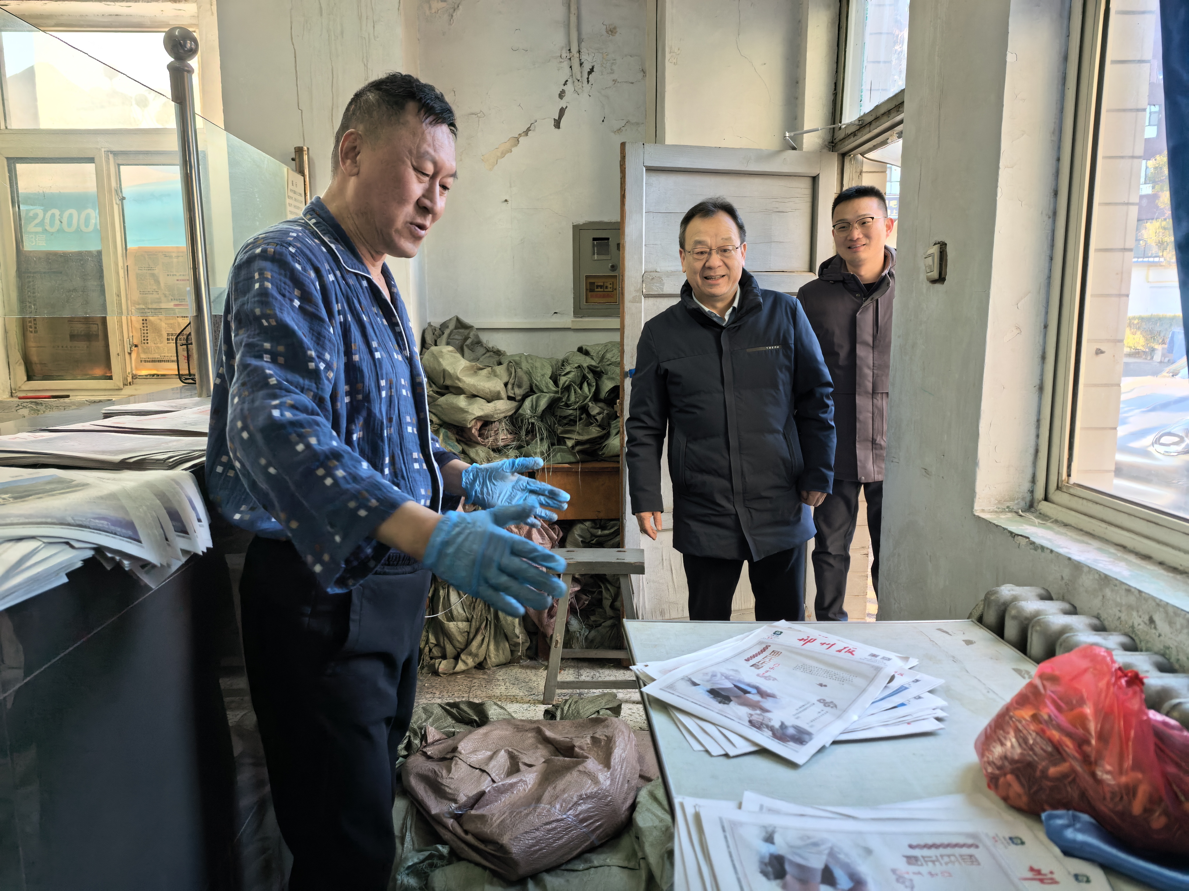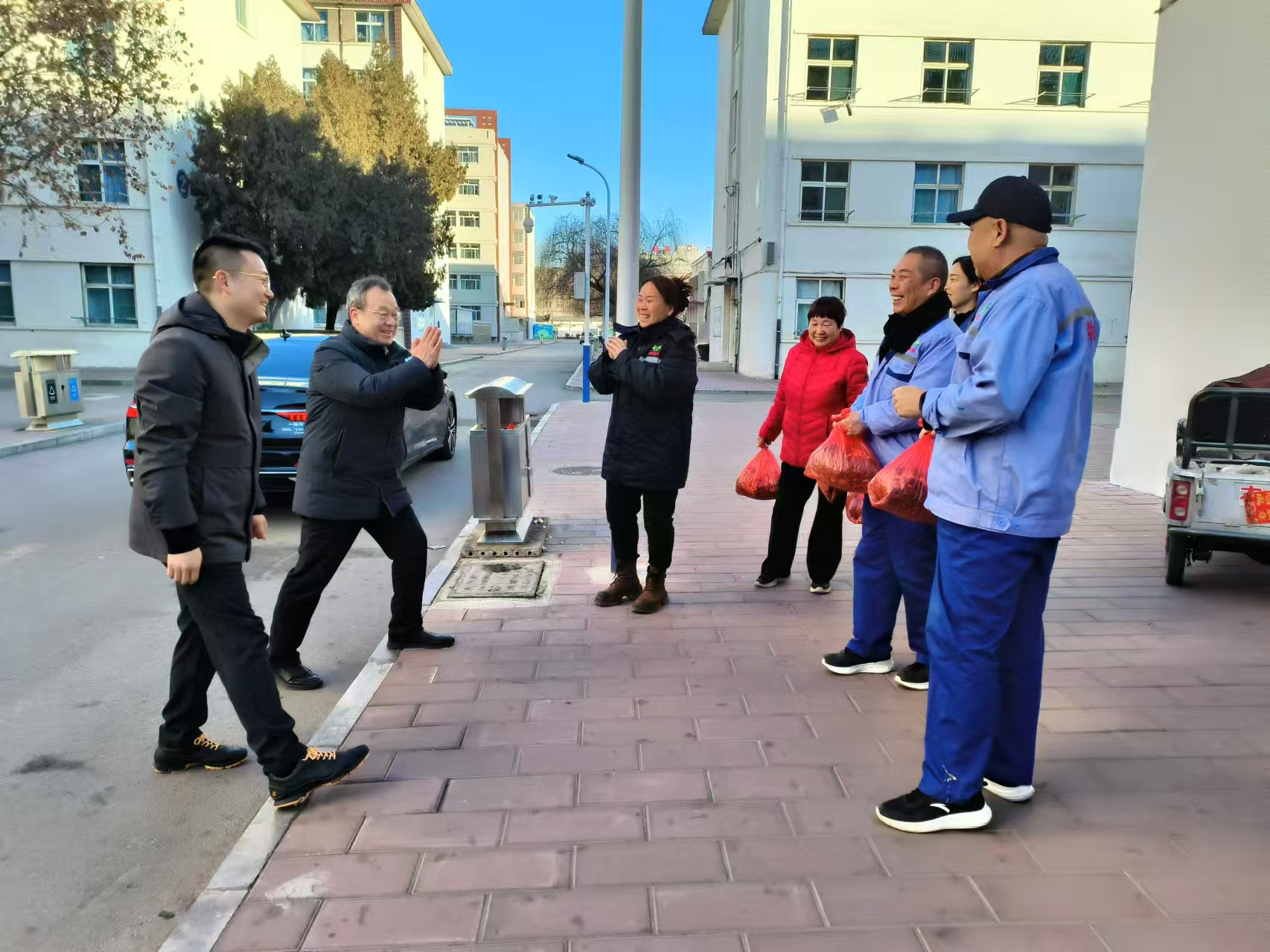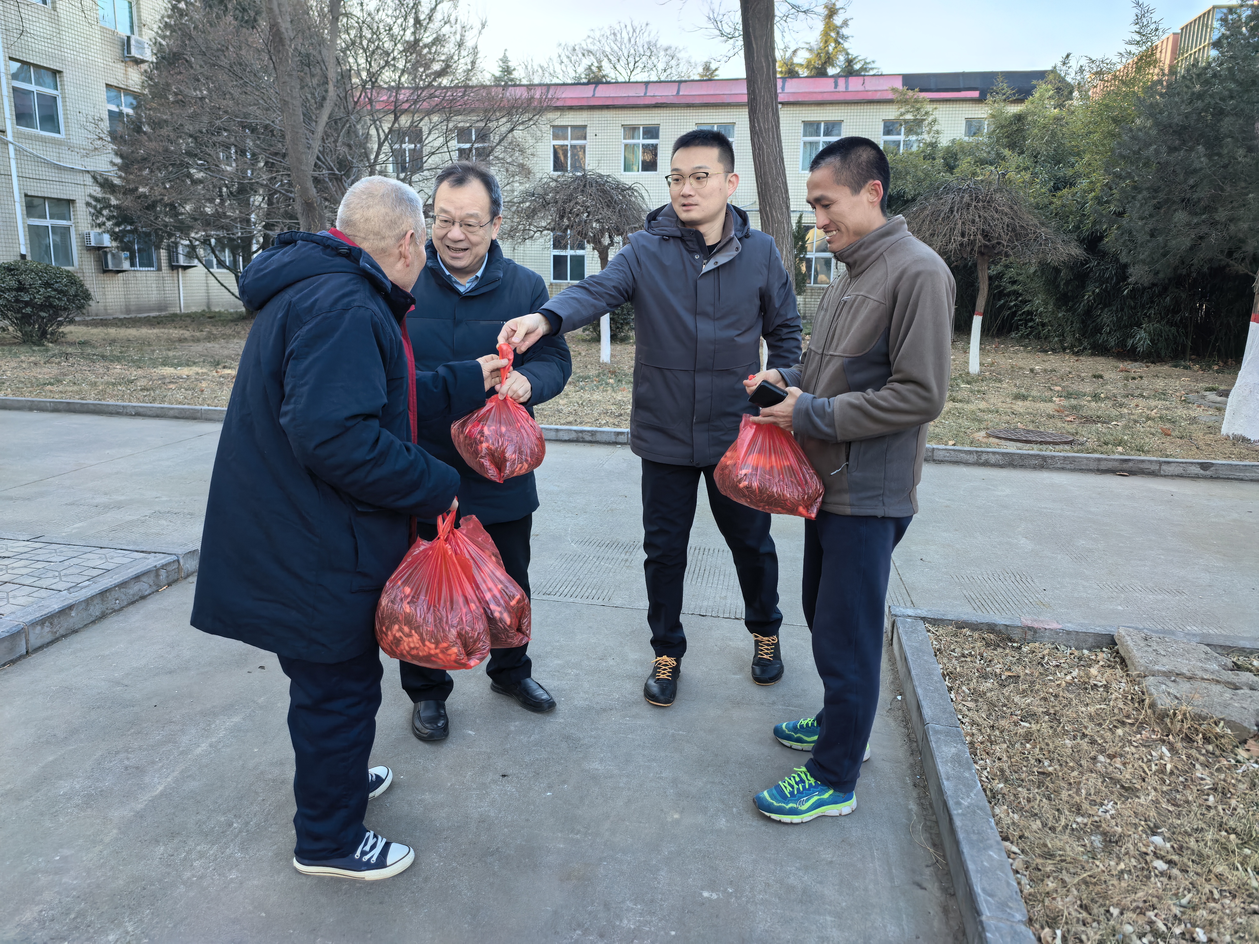 在公寓7号楼值班室,赵建光与值班人员亲切交谈,了解他们的工作和生活情况,并叮嘱他们注意保暖和安全。主楼物业值班室的工作人员同样收到了暖心的慰问,他们负责校园的清洁和安全,是校园环境的守护者。