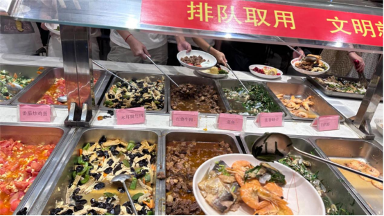 中午时分,陆续前来就餐的老师们带着节日的喜悦,放下工作中的严肃,品美味,相谈欢,在专属的节日里,享受这份难得的轻松与惬意。