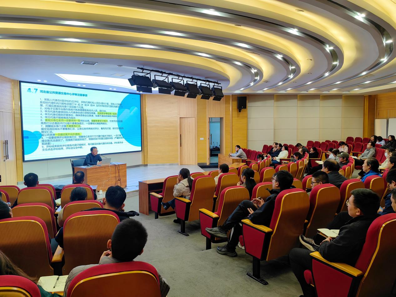 本次培训特邀河北宏信招标有限公司政府采购评审专家就政府采购相关业务进行系统讲解,聚焦“政策解读—流程梳理—实操指导—案例警示”四大板块,着力提升参训人员的政策理解能力与评审实务水平。培训采用循序渐进的方式,详细解读了《中华人民共和国政府采购法》及其实施条例、《政府采购货物和服务招标投标管理办法》、《政府采购促进中小企业发展管理办法》等核心法律法规,通过流程图直观展示各类采购方式的适用情形与操作流程,并重点强调了评标过程中的关键环节与注意事项。。