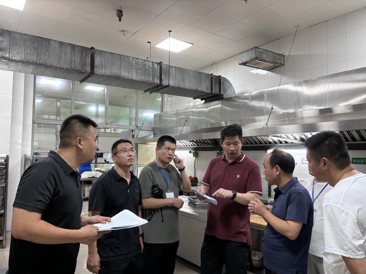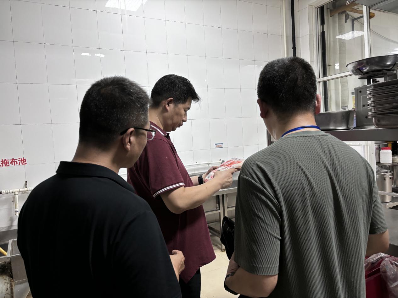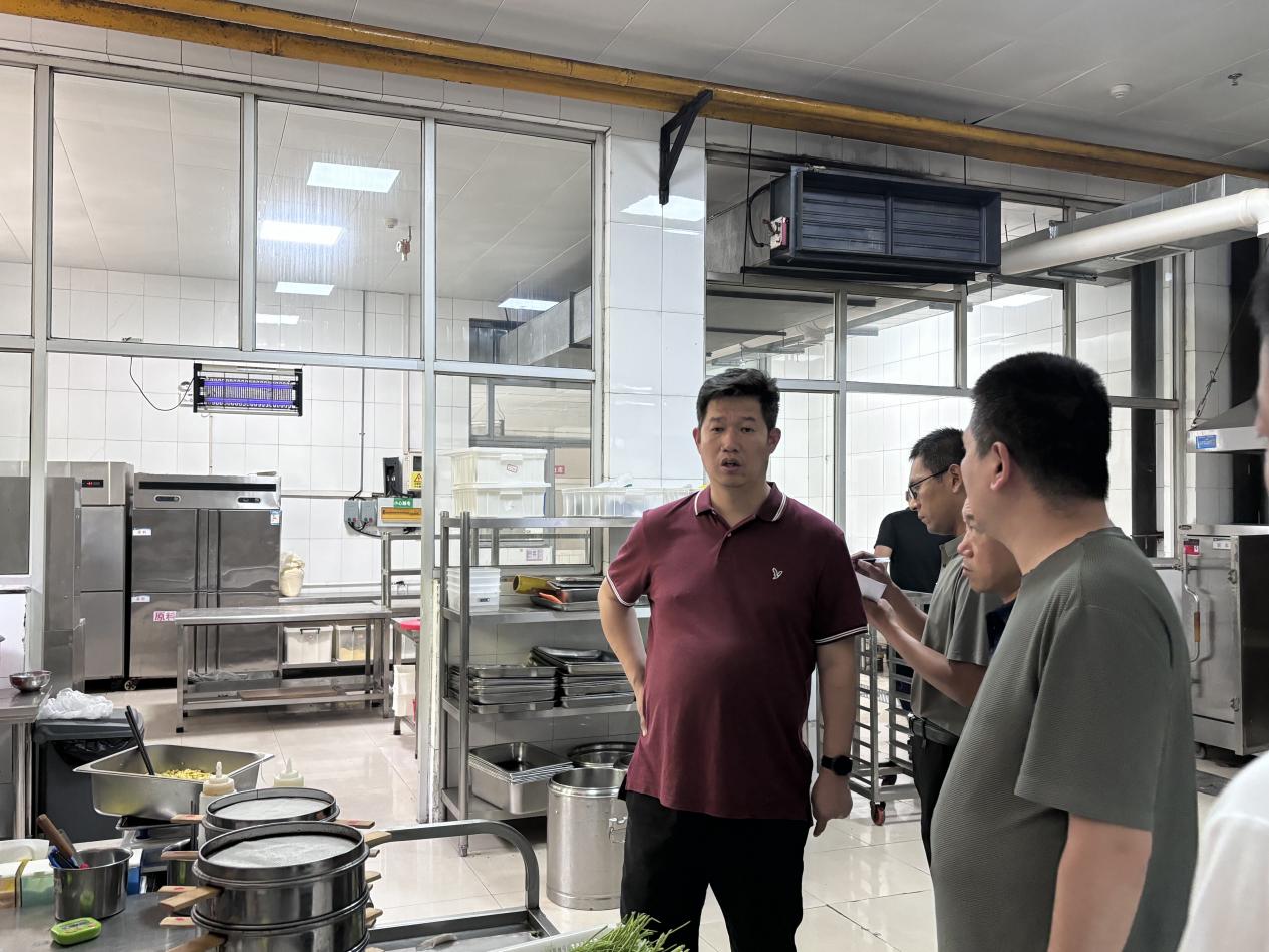 随后检查组来到校园东区和西区食堂,主要围绕学校食堂经营管理情况和食品安全卫生管理情况进行实地查看,重点检查了师生就餐大厅清洗消毒状况、菜品结构、材料供应与储备、操作间设施设备、食堂后厨食品安全卫生等环节的落实情况。李磊指出,要始终高度重视材料存储及加工过程中的安全卫生问题;切实做好燃气安全、消防安全工作;安排好设施检修和设备配置工作,利用假期时间完成维修改造,切实做好新学期伙食保障工作。