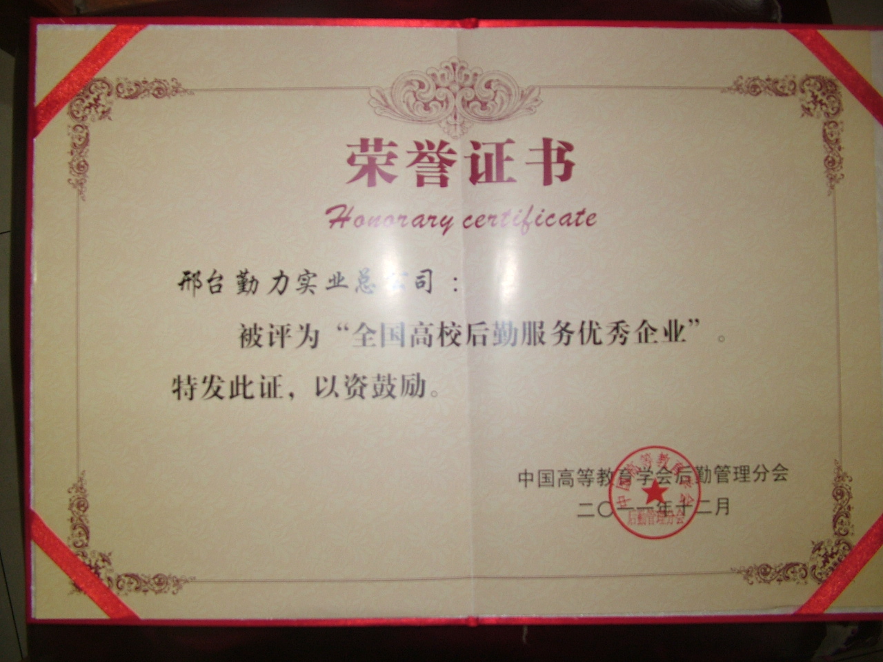 邢台勤力实业总公司荣誉奖牌