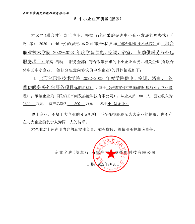 二、项目名称:邢台职业技术学院2022-2023年度学院供电、空调、浴室、冬季供暖劳务外包服务项目公开招标