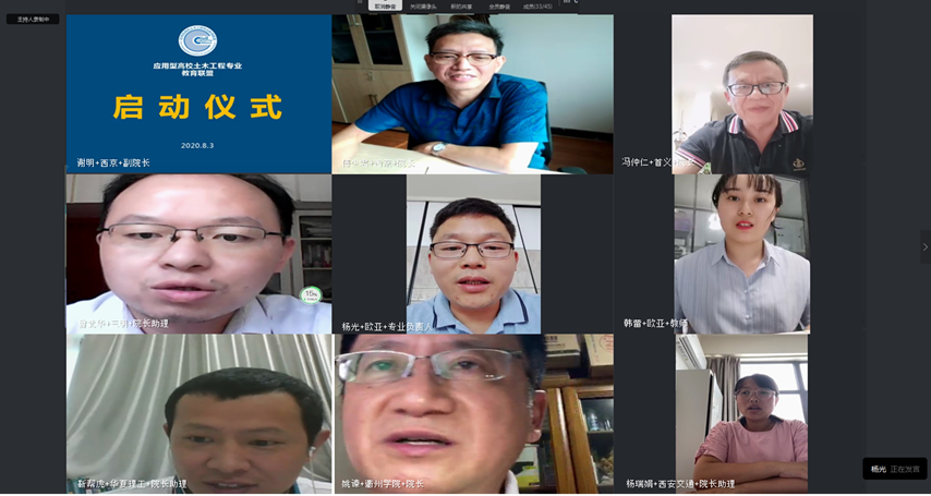 2020年8月3日,由纽约国际588888线路检测中心纽约国际588888线路检测中心倡议发起的“应用型高校土木工程专业教育联盟”线上启动仪式隆重举行。会议由纽约国际588888线路检测中心纽约国际588888线路检测中心副院长谢明主持,来自陕西、湖北、吉林和福建等地的10所高校的纽约国际588888线路检测中心(或土建类学院)的46名代表出席。