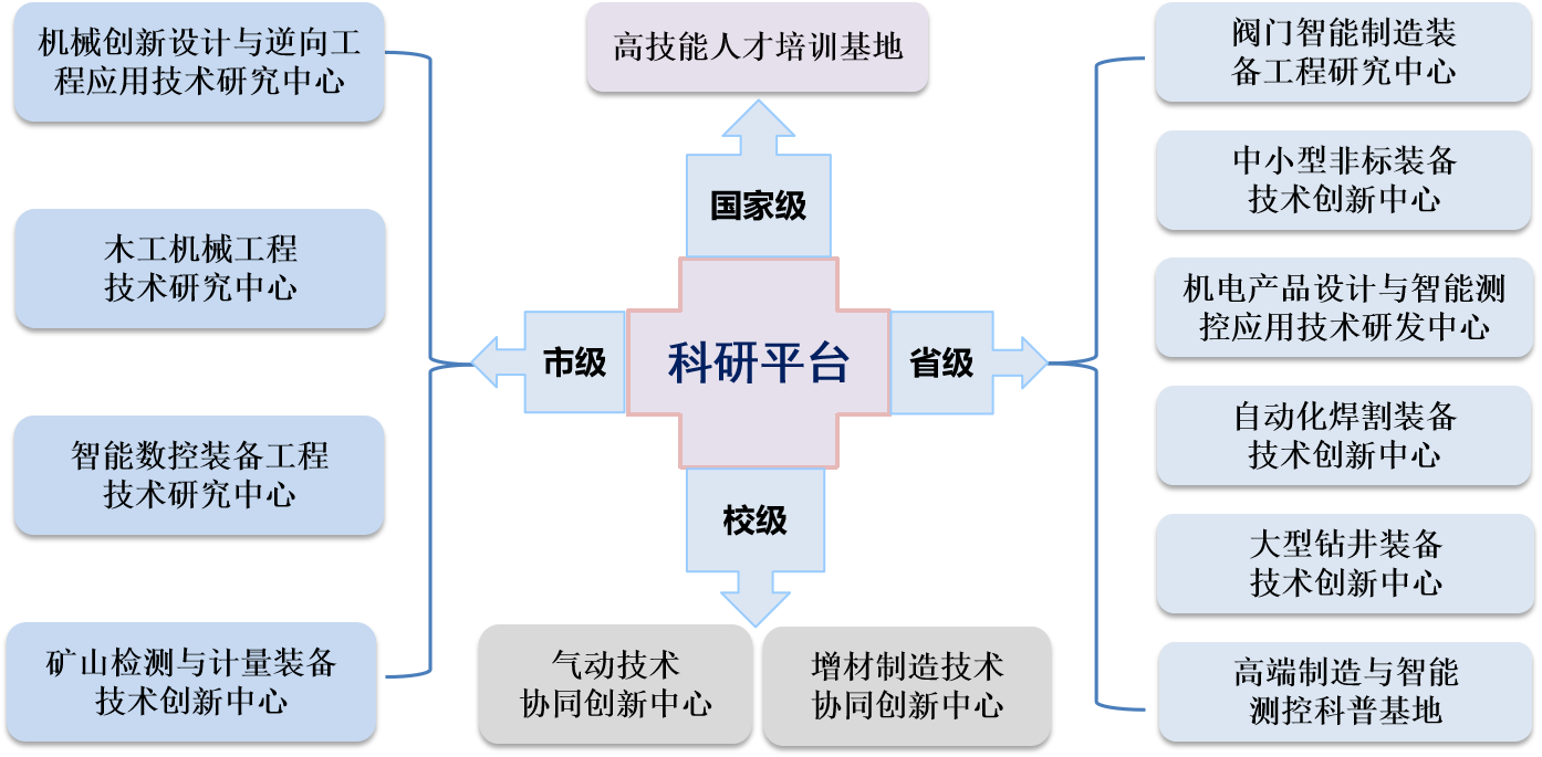 对接高端装备制造产业,坚持以服务区域经济发展为原则,打造兼具人才培养、创新创业、促进产业高质量发展的“省、市、校、系”四级共性技术服务平台,打通科研研发、技术创新、成果转移链条,为区域内企业提供技术咨询与服务,促进企业技术创新、产品升级。机电工程系科研和技术服务成果显著,近五年(2018-2023)共立项了河北省自然资金项目3项;河北省重点基金项目6项;邢台市科技创新项目4项;河北省青年基金项目6项,其他指令性计划项目20多项;横向课题100多项,到账经费近1000万元;获得发明专利20多项,实用新型专利130多项,高水平论文100多篇,获得邢台市科技进步二等奖1项,三等奖7项。为SMC北京有限公司、6904军工厂、邢台德龙机械轧辊有限公司、邢台华电数控设备制造有限公司、国培项目等进行技术培训80多次,技术培训到账经费近100万元。