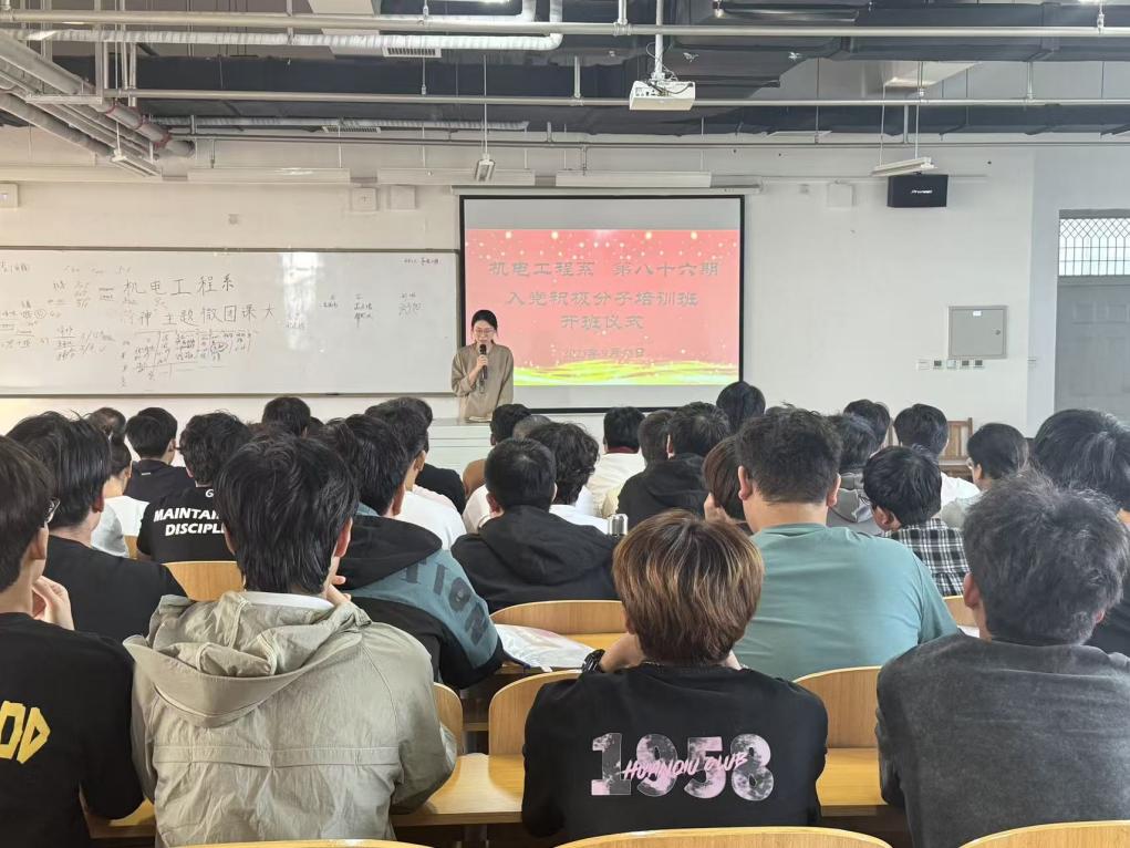 2025年9月25日至10月11日,机电工程系2025年下半年入党积极分子培训工作顺利推进并圆满完成。本次培训在机电楼521教室开班,由我系党总支书记马雪芳、副书记赵玉清、学生党支部书记苗艺及各位授课教师带队,通过理论授课、交流研讨、结业考核等环节,扎实筑牢42名入党积极分子的党的理论根基,有效强化其党性修养,既推动积极分子以实际行动向党组织靠拢,也为我系后续党员发展工作筑牢了基础。