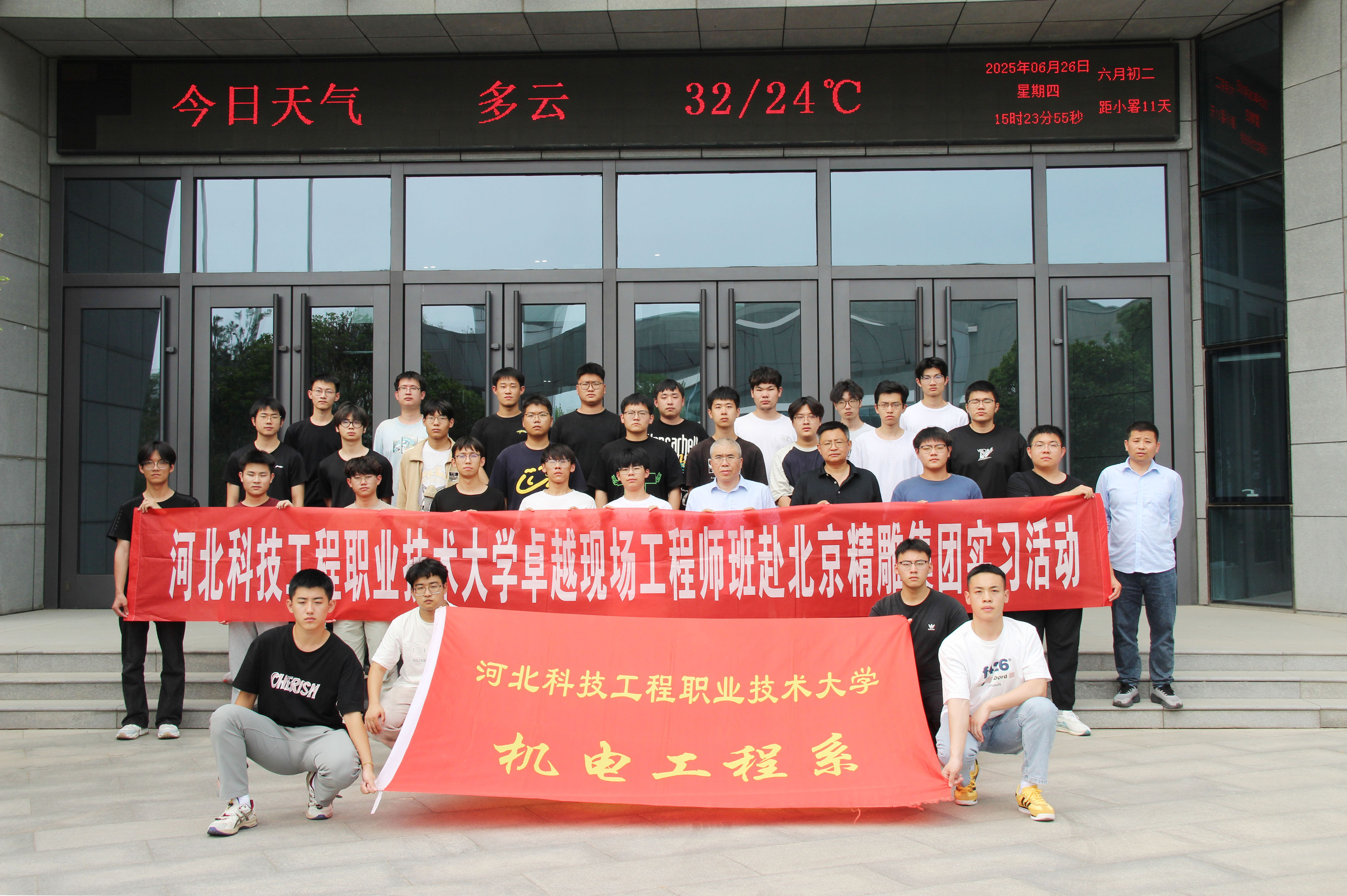 根据职业本科人才培养方案要求,为了培养学生的职业能力、综合素质和创新能力并提升学生的就业竞争力,于6月3日至6月27日,best365机电工程系23级卓越现场工程师班学生在专业教师的带领下到北京精雕科技集团(廊坊)开展工学交替实习。