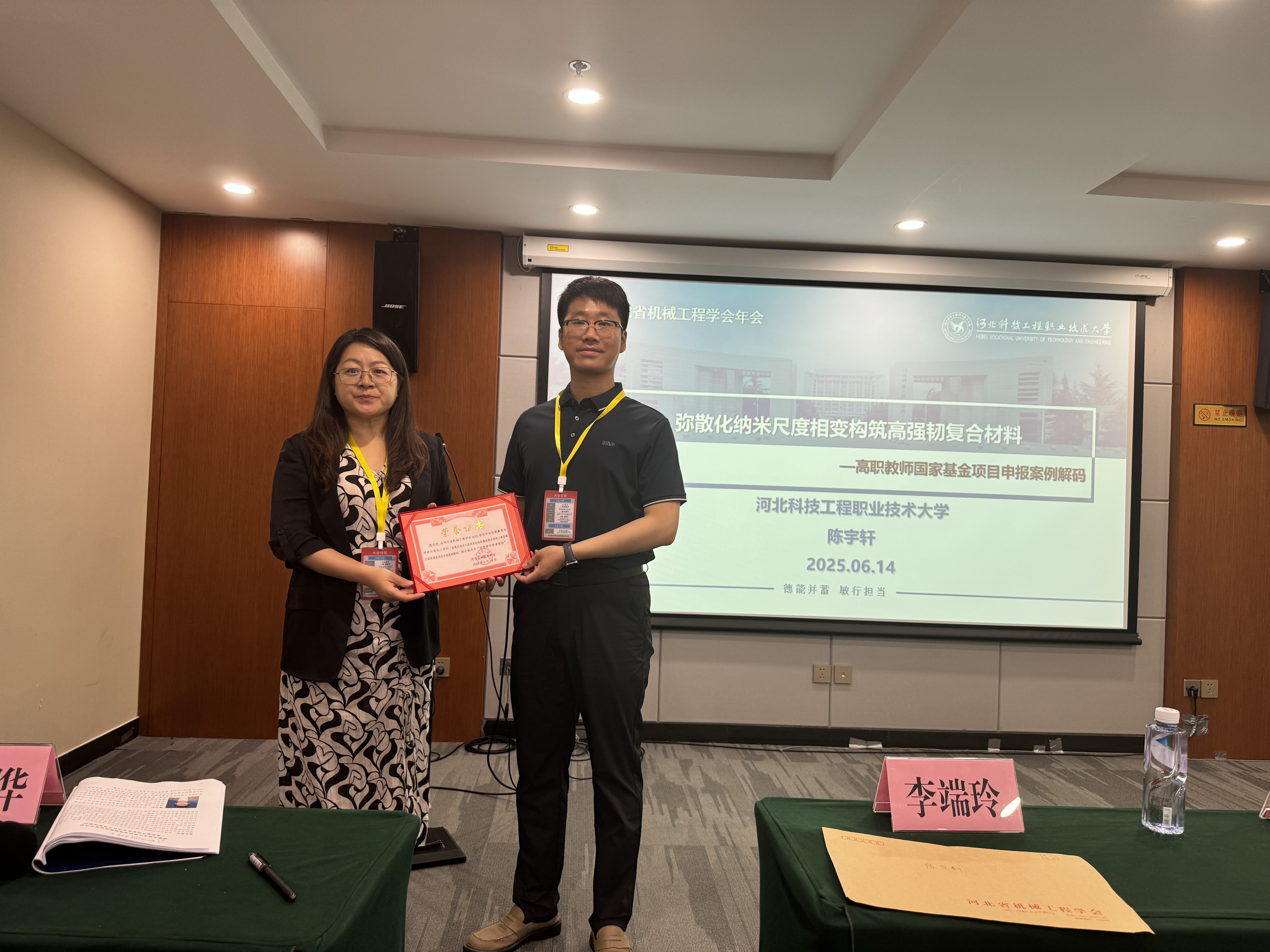 6月13-15日,河北省机械工程学会2025学术年会暨京津冀机械学科院长(系主任)论坛在河北省唐山市成功举办,本次会议由河北省机械工程学会主办,中车唐山机车车辆有限公司、河北工业大学联合承办,best365机电工程系主任高英敏一行5人参加了本次会议。同时best365机电工程系陈宇轩博士受邀在“京津冀青年学者科研基金项目交流论坛”上做了题为《弥散化纳米尺度相变构筑高强韧复合材料——高职教师国家基金项目申报案例解码》的报告分享,并获得了学会颁发的证书,其展现了best365的科研成果,进一步扩大了在行业的影响力。