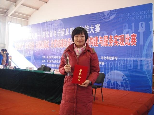 2014年12月13日,我院机电工程系学生和教师在河北省工业和信息化厅、河北省人力资源和社会保障厅、河北省教育厅共同主办的河北省电子信息职业技能大赛---计算机辅助设计大赛赛项中双双夺冠,学生闫文涛、郭竹林获得学生组一等奖,同时获得“河北省电子信息行业技术能手”荣誉称号,高运芳老师获得职工组一等奖,同时获得“河北省技术能手”荣誉称号。