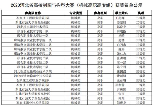 2020年11月21日,河北省教育厅、河北省图学会以线上方式举办了河北省制图与构型能力大赛。比赛按照专业类型分为机械类和建筑类;按照层次分为本科组、高职高专组、中职组。共计有114个队,570人参加了比赛。