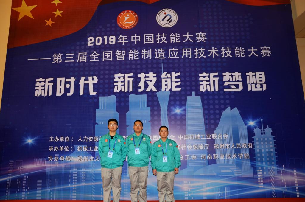 2019年11月18日,由人力资源社会保障部、中华全国总工会、中国机械工业联合会共同主办的2019年中国技能大赛——第三届全国智能制造应用技术技能大赛决赛在郑州会展中心拉开帷幕。我院选派学生王佳宝、韩智博、王震组成学生组参加赛项切削加工智能制造单元安装与调试的比赛。经过四天激烈的角逐,我院学生在切削加工智能制造单元安装与调试赛项获得学生组三等奖。