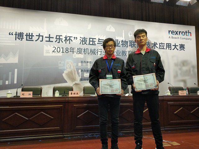 12月4日至6日,由全国机械职业教育教学指导委员会、机械工业教育发展中心主办的“2018年全国机械行业职业院校技能大赛-‘博世力士乐杯’液压与工业物联网技术应用大赛”在常州机电职业技术学院成功举办。经过三天的比拼,由我院机电工程系教师高利军、赵玉清指导的刘宏利、王鑫泽同学组成的代表队获得大赛三等奖。