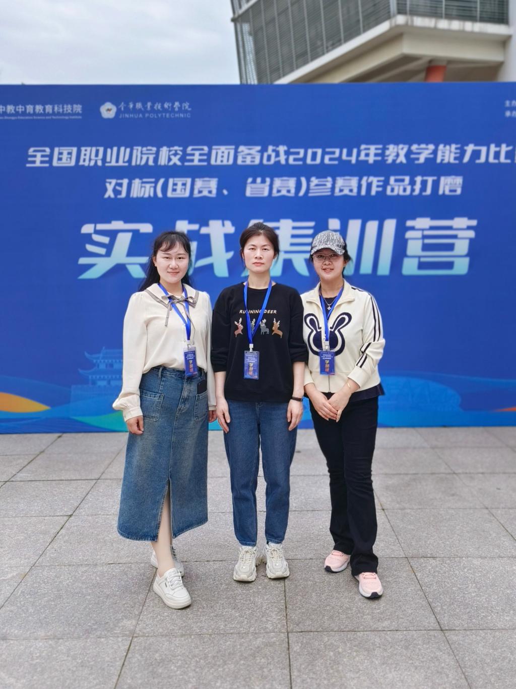 为落实《国家职业教育改革实施方案》,全面提升教师教学设计能力,促进教师综合素质、专业化水平和创新能力的全面提升,推进教育教学全面改革,更好的应对教学能力比赛,我系席娟、王卓群、张建巧三位教师于3月22日至3月25日赴金华职业技术学院参加了“全国职业院校全面备战2024年教学能力比赛对标(国赛、省赛)参赛作品打磨实战集训营”。