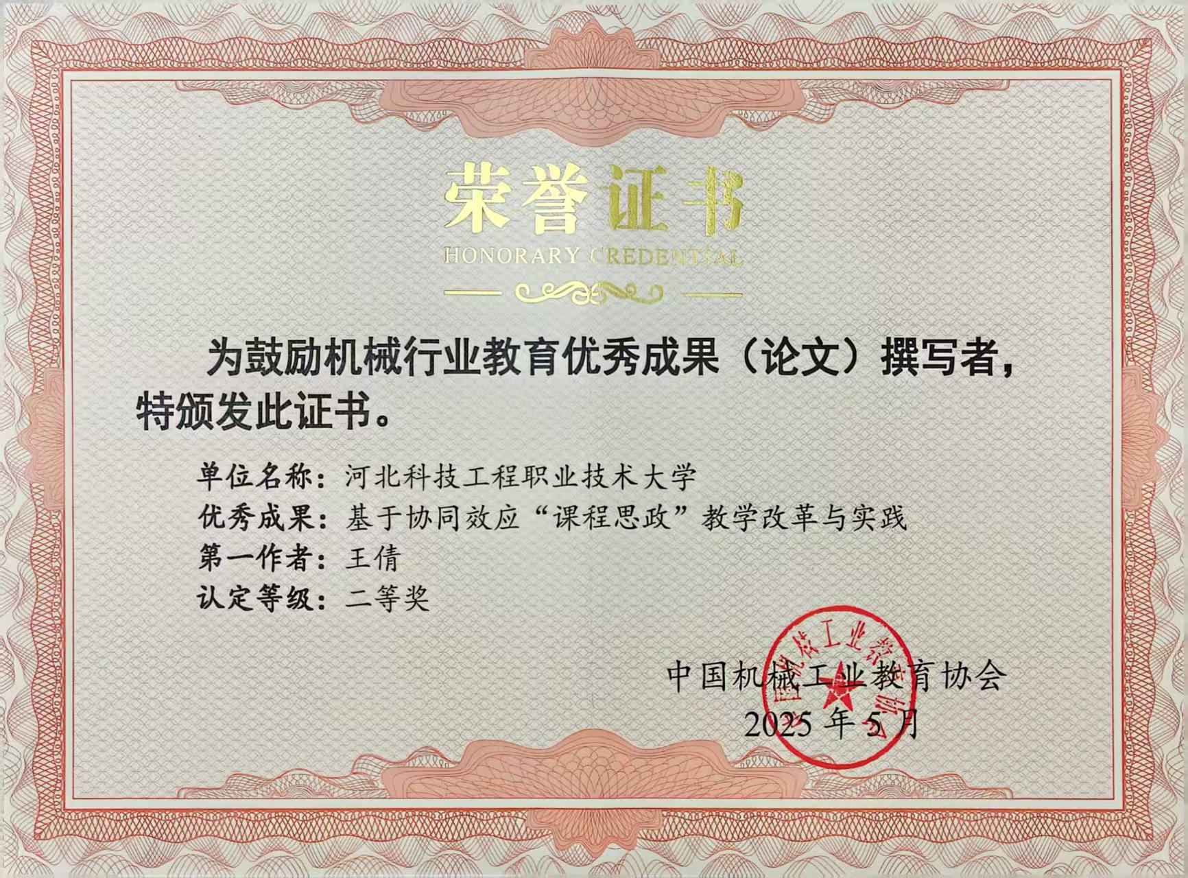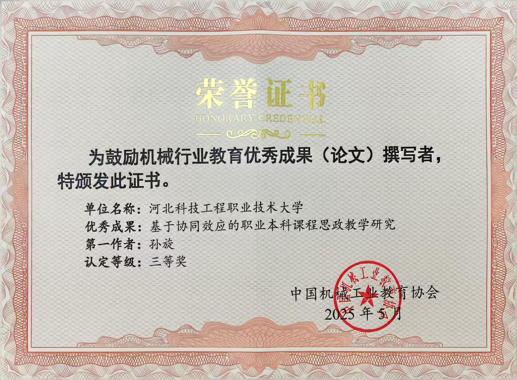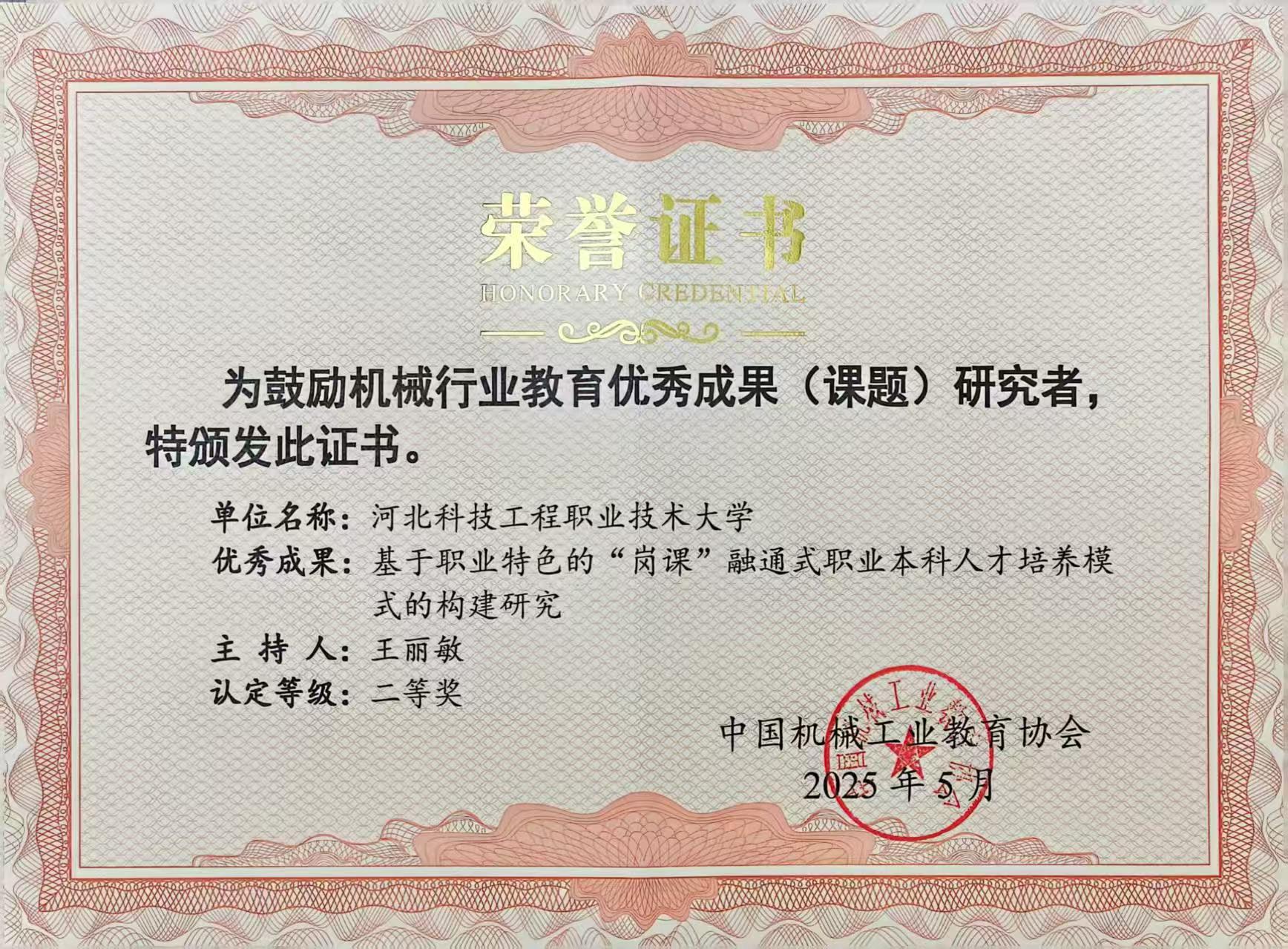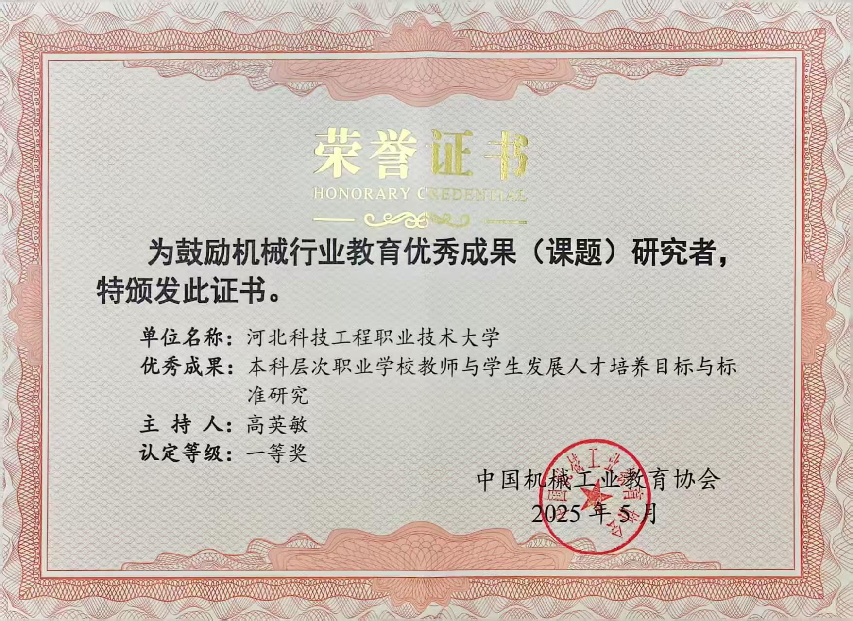 会上,best365教师刘德华被授予“中国机械行业教育教学名师”荣誉称号。