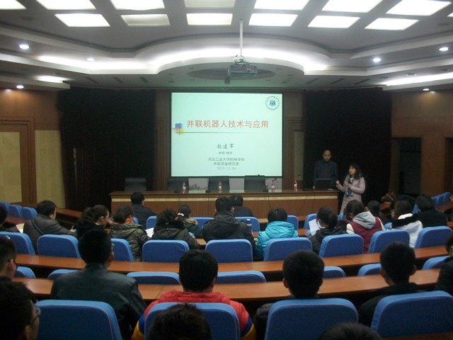 2015年12月26日,机电工程系特邀河北工业大学机械学院并联装备研究室博士生导师张建军教授,在图书馆学术报告厅举办了以“并联机器人技术与应用”为主题的讲座。参加本次讲座的有解海滨主任、马雪芳副书记、高英敏副主任、机电工程系全体教师及本、专科部分学生。