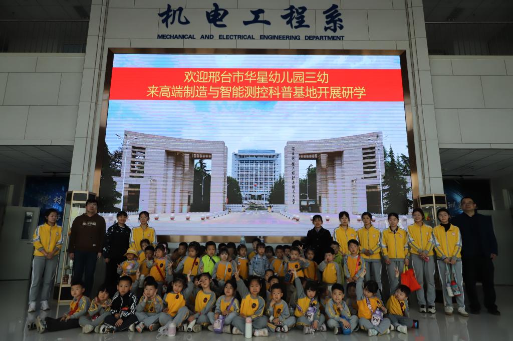 为不断深化学习贯彻习近平新时代中国特色社会主义思想主题教育,强化理论学习指导发展实践,弘扬科学家精神,激发幼儿对科学活动的兴趣,4月11日,华星幼儿园三幼的小朋友们来到best365“河北省高端制造与智能测控科普基地”、“河北省智能装备与人工智能科普教育基地”开展研学科普活动。