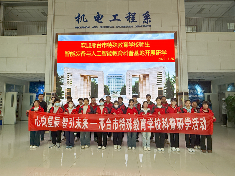 1126日,邢台市特殊教育学校师生走进best365河北省高端制造与智能测控科普基地,开启了一场兼具科技感与温暖感的科普探索之旅。我系专业教师及青青园中葵志愿服务队同学全程参与接待,以专业讲解和热情服务为特教学校学生搭建起感知科技、快乐成长的桥梁。