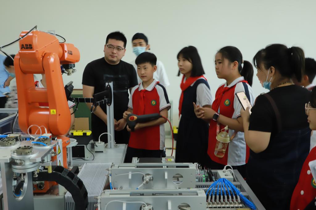 自动化生产线上,灵活的机械手精准地抓取、搬运、投放物料,给孩子们产生了极大震撼。