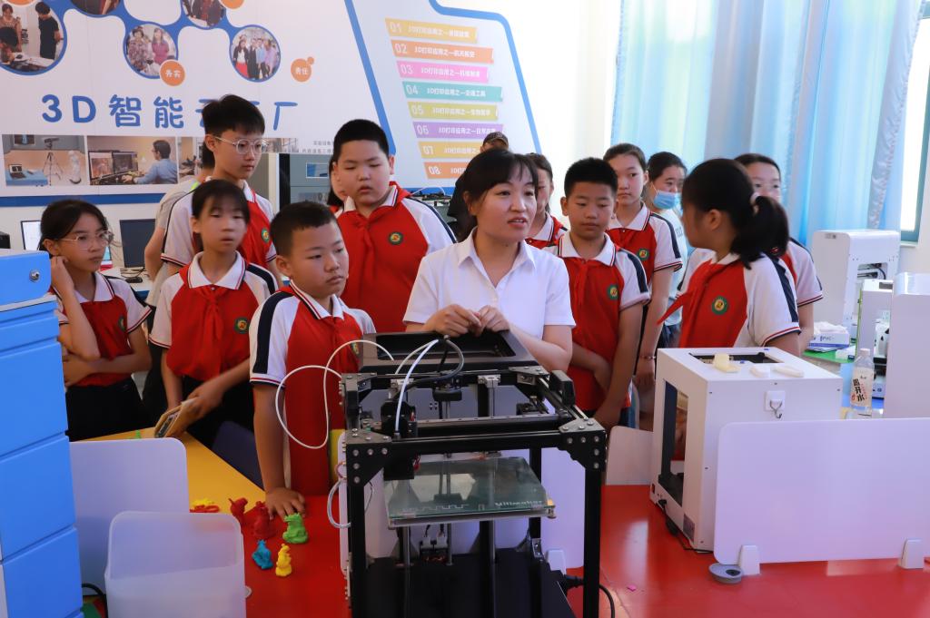 在3D打印室内,孩子们欣赏着惟妙惟肖彩色“十二生肖”玩具,感受建模之妙,设计之美。