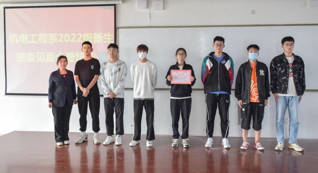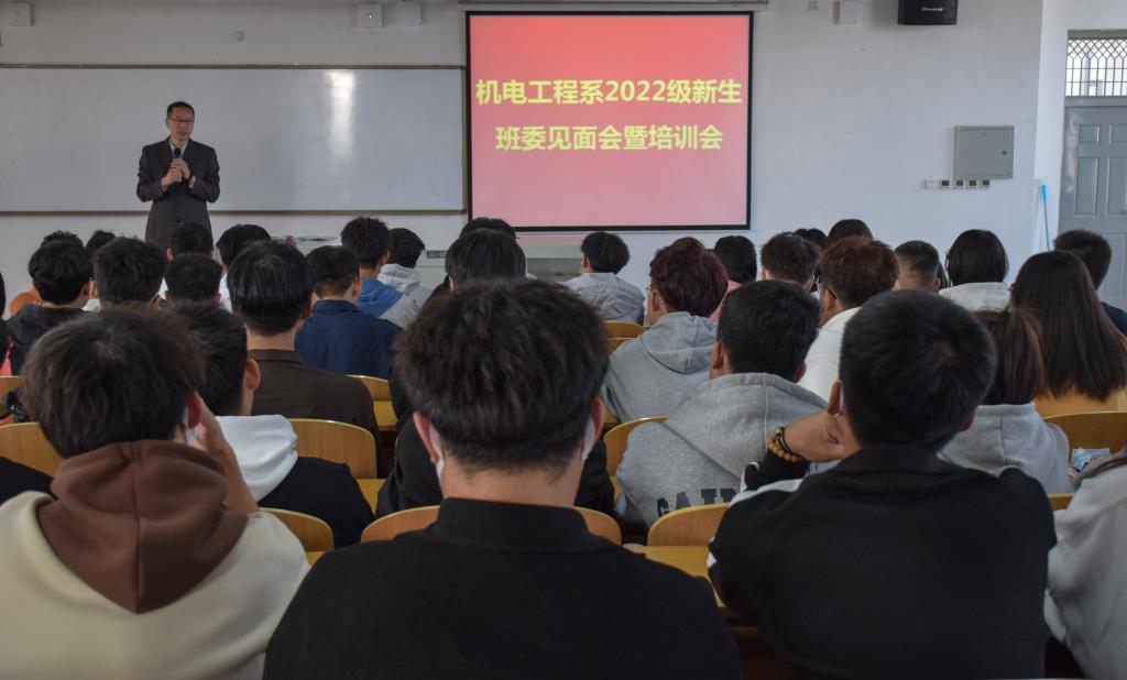 为进一步加强机电工程系新生班级建设,明确班委开展工作的方向和目的。我系于2022年10月19日下午两点半在机电楼521教室成功召开2022级新生班委见面会暨培训会,参与本次会议的有机电工程系赵玉清副书记、高英敏主任、蒲筠果副主任、王亚炜老师、闫健娜老师以及各班包班老师。