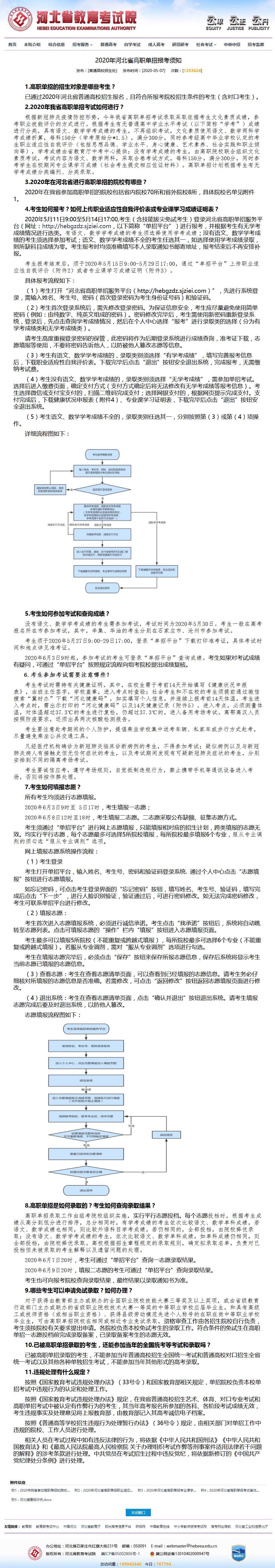 2020年河北省高职单招报考须知