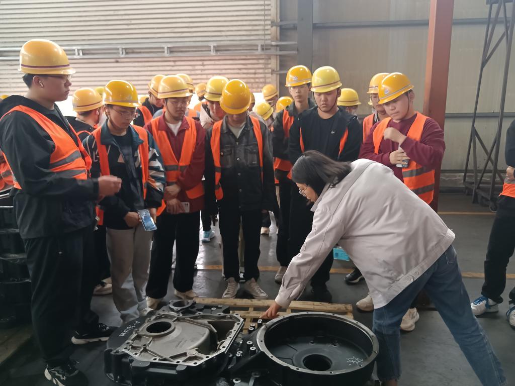 到达实习地点之后,实习指导老师首先给同学们讲解了实习的安全规范和注意事项,并再三告诫同学们要做到“三不伤害”,即不伤害自己、不伤害他人、不被他人伤害。本次实习先后参观了襄阳中康汽车零部件有限公司、襄阳光瑞汽车零部件有限公司、襄阳中基创展智能科技有限公司、湖北君庭汽车零部件有限公司、中印南方印刷有限公司、湖北神誉机械制造有限公司、东风旋压技术有限公司、湖北新日电动车有限公司等八家企业。通过企业实习,同学们了解了发动机缸体、缸盖、齿轮、齿轮箱、齿轮轴、飞轮壳等典型机械零部件的生产工艺和过程、生产设备;对产品总装、冲压设备和工艺、皮带轮旋压件生产设备和工艺、机器人焊接、智能制造印刷设备、智能设备生产及组装调试有了更深刻的认识。在实习的空余时间,企业安排了经验丰富的工程师进行技术培训,同学们通过技术培训进一步提高了自己的知识储备以及专业技能。实习结束后,同学们针对实习内容进行总结,分享了实习的收获与感悟。
