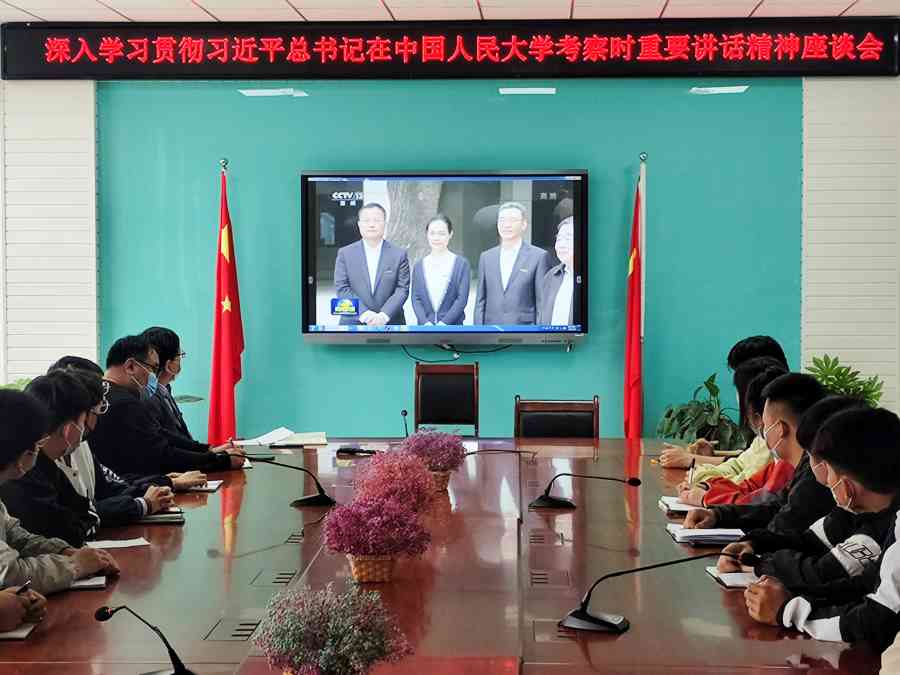 2022年5月9日,机电工程系在机电实训楼304会议室召开深入学习贯彻习近平总书记在中国人民大学考察时重要讲话精神座谈会,参与本次会议的人员有系党总支书记、学生支部书记、团总支书记及青年学生代表共计50余人参加座谈。