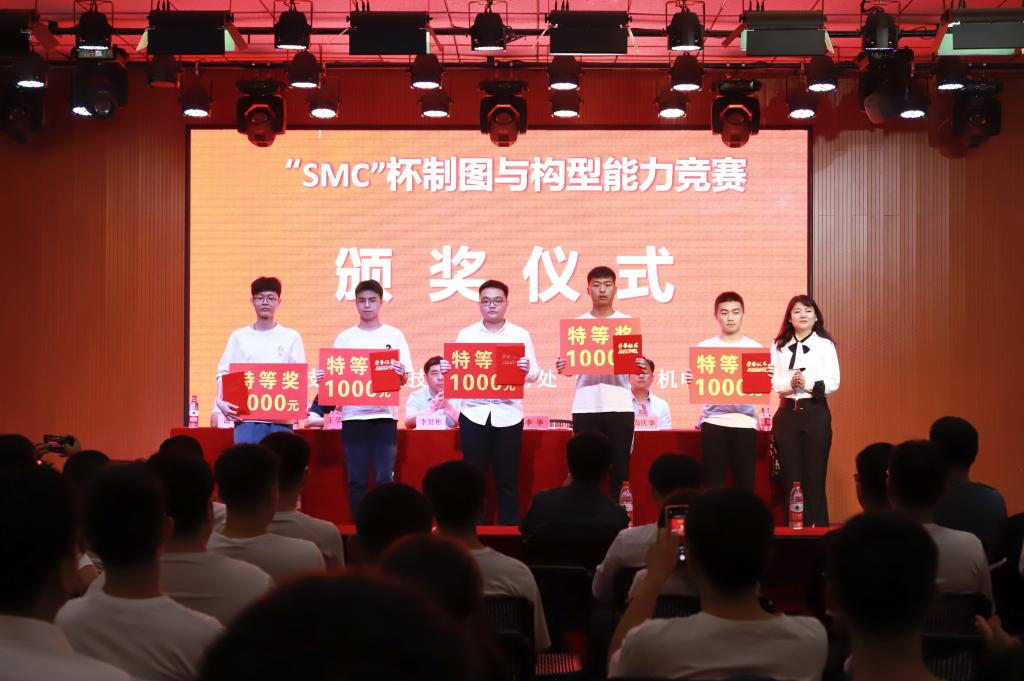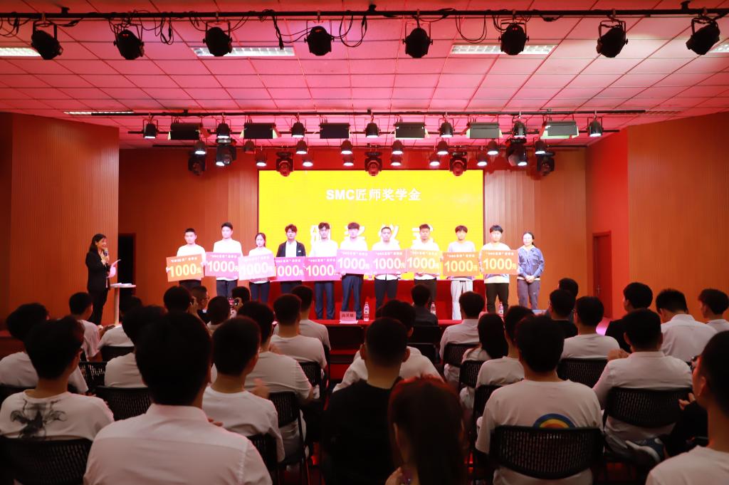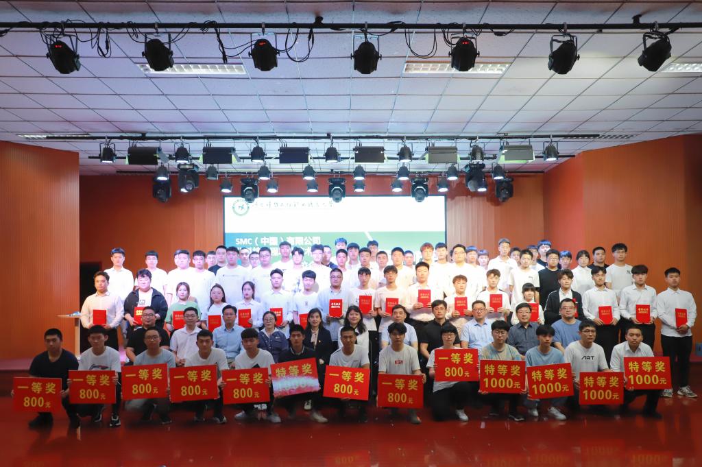 首先李贤彬副校长致辞,对双方长期合作取得的丰硕成果表示祝贺,希望双方以合作建设智能制造产业学院为契机,深入推进产教融合发展,取得更大的辉煌。随后李华董事向“SMC杯”系列竞赛的获奖同学和指导老师表示热烈的祝贺,希望在工学交替生产实习、顶岗实习、老师企业实践、技能大赛以及建立协作创新中心等的基础上,不断拓宽合作新领域,探索合作新方式。紧接着李贤彬副校长与李华董事在现场共同签署智能制造产业学院合作协议。然后,李贤彬副校长、王学东处长、温斌处长和李华董事、尚庆华所长、谭祥颖课长为“SMC杯”系列竞赛获奖者以及SMC匠师奖学金获得者进行了颁奖,并正式拉开了2021年“SMC杯”大学生系列大赛的序幕。最后,与会者在大学生活动中心合影留念,为这次校企合作活动画上完美的句号。