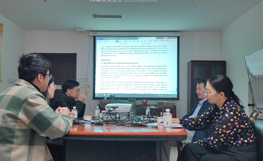 20230408-09日,我系教师陈宇轩(左一)赴北京与澳大利亚西澳大学前副校长Liu Yinong教授(右二)与Yang Hong教授(右一)进行了学术交流,中国石油大学(北京)崔立山教授(左三)一同参与交流。交流内容主要围绕:NiTi基形状记忆合金的相变特性与组织形貌内在联系、未来SCI论文发表、研究生/博士培养等。