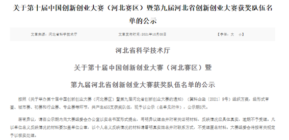 本届本次比赛由省科技厅主办,省财政厅、省教育厅、省委网信办、省工商联、省农业农村厅共同支持,大赛以“冀汇新动能,智创新未来”为主题,启动以来,受到了社会各界广泛关注和积极参与,共吸引4021个项目报名参赛。项目涵盖新一代信息技术、高端装备制造、生物医药、新材料、新能源、新能源汽车、节能环保7大战略新兴产业及乡村振兴领域。通过初赛、城市赛、行业赛等层层选拔,企业组合团队组共产生了一等奖98项,二等奖133项,三等奖224项。