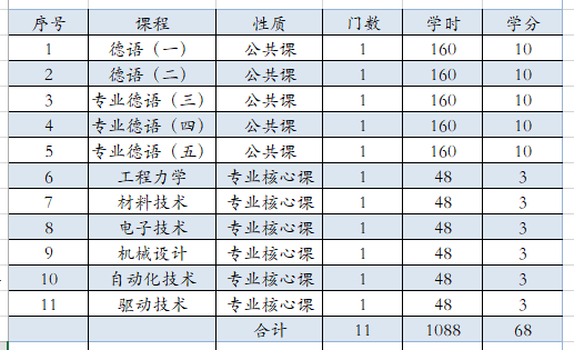 课程设置是由我院与德国大学共同制定教学计划,原版引进部分德国大学专业课程和教材,并由德国大学优质师资授课。在机电一体化专业课程体系的基础上,着重引进德方课程,建立国际化课程体系。