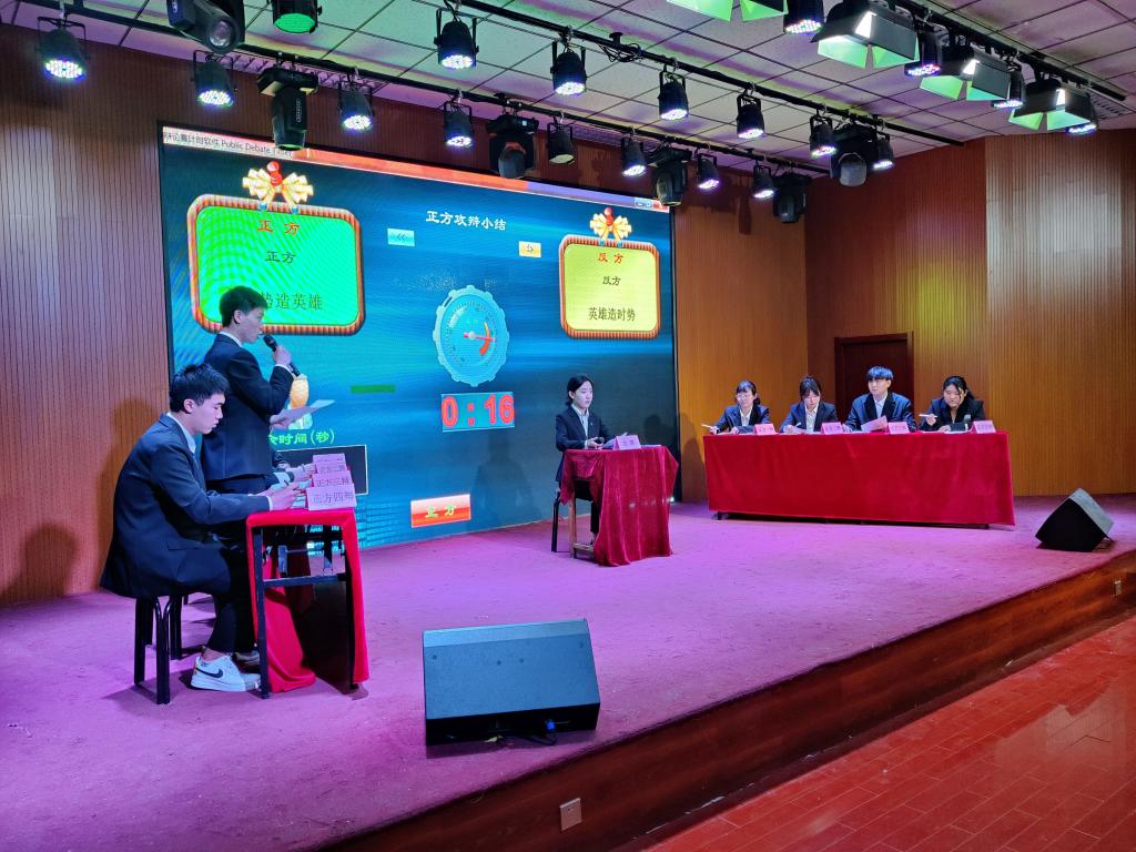 本次比赛辩题为“时势造英雄VS英雄造时势”。比赛中,正反双方围绕辩题展开了激烈辩论,辩手们引经据典、各抒己见、妙语连珠,唇枪舌战中不乏机智与幽默,针锋相对中更见从容与气魄。在场师生们在观看辩论的过程中启迪了思维,增长了知识。最后,经过评委们的投票决定,本次辩论比赛的最佳辩手为反方四辩张雅萱同学。