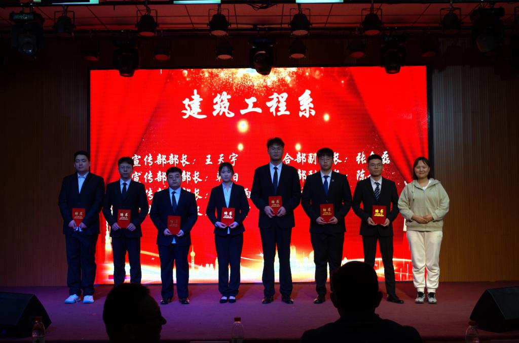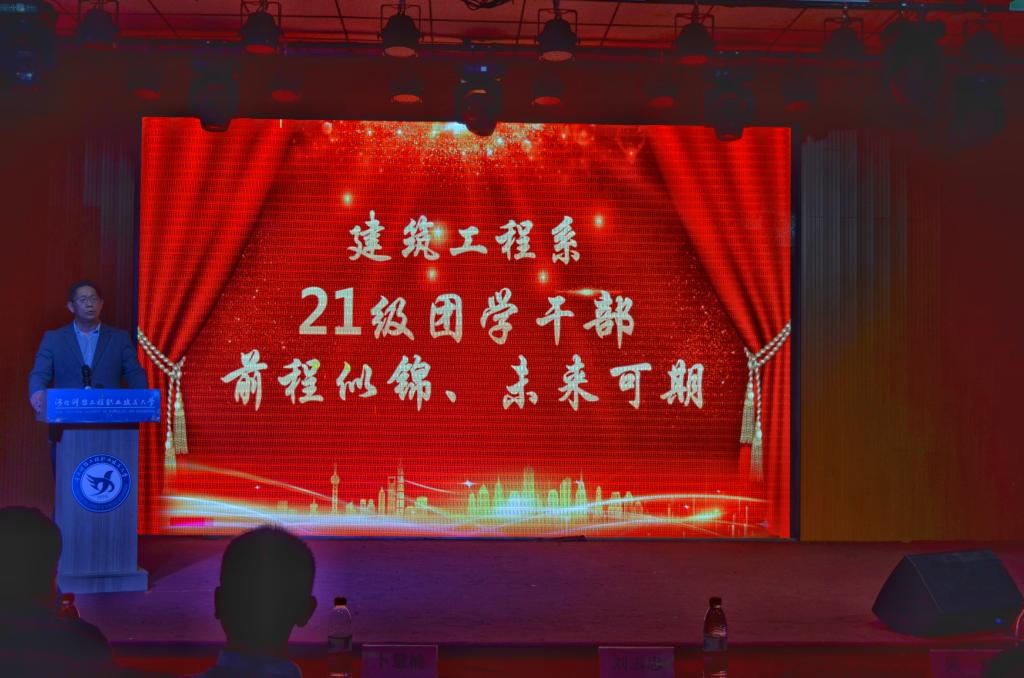 建筑工程系于4月12日在大学生活动中心,举行21级团学干部聘书颁发仪式。建筑工程系党总支刘志忠书记以及全体辅导员老师出席仪式,21级、22级全体学生骨干参加。