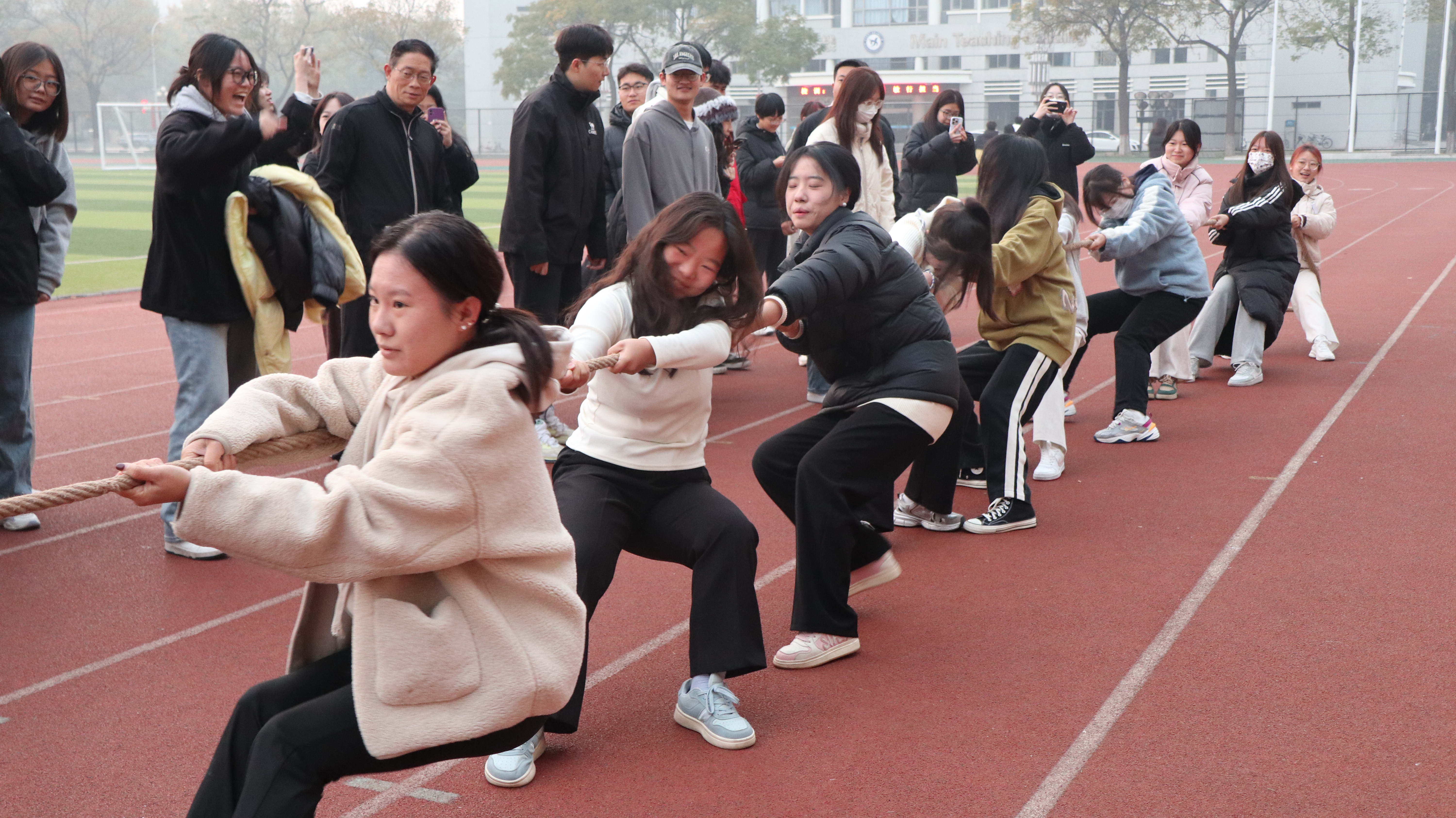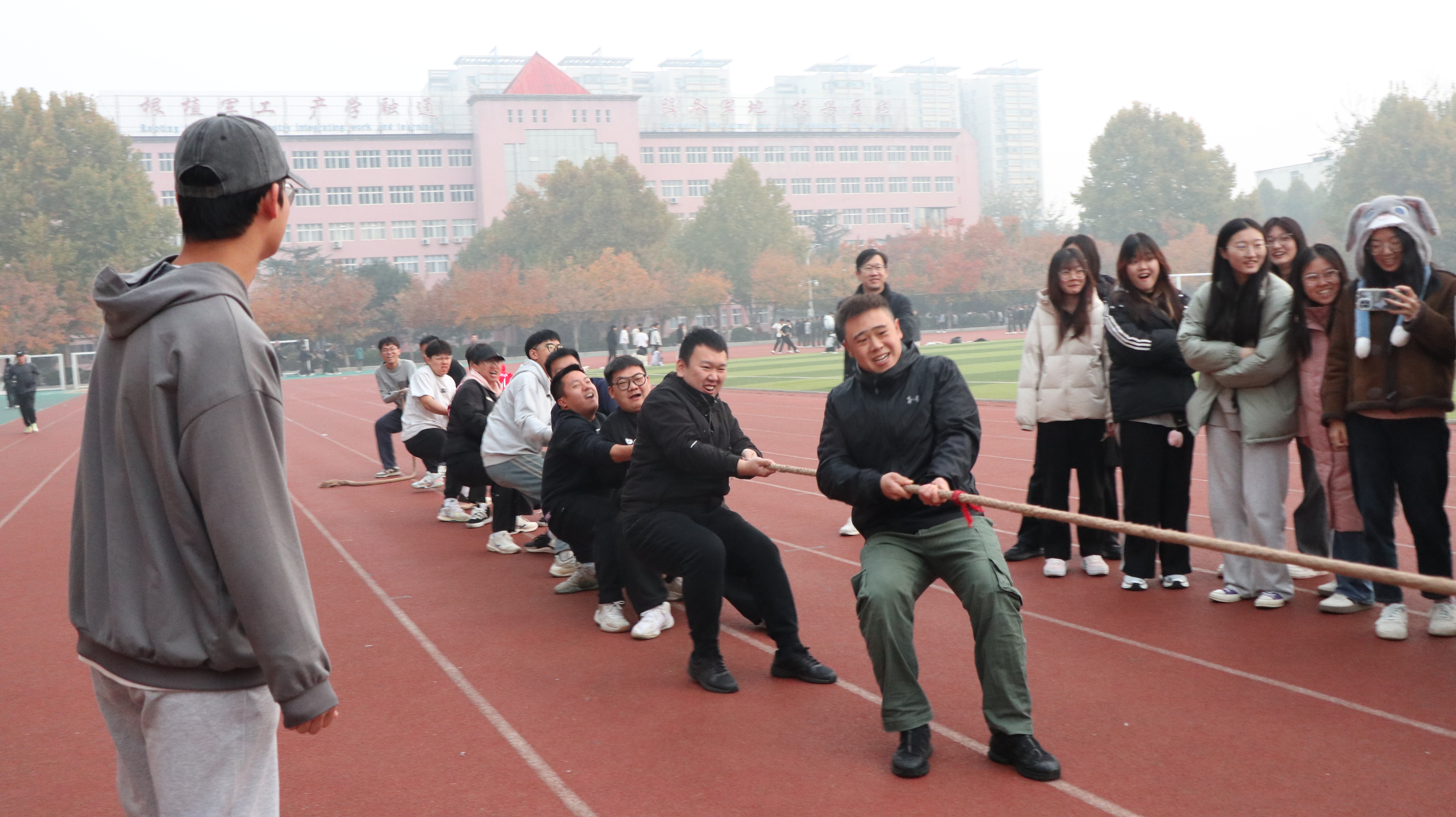 比赛开始之前,刘志忠书记发表讲话,对同学们提出四点要求和希望:一是增进团结和友谊,提升集体主义观念和荣誉感;二是通过拔河比赛强身健体,磨练意志;三是培养高雅的兴趣爱好,养成科学的作息规律;四是科学规划大学生活,使大学生活过得充实而丰满。