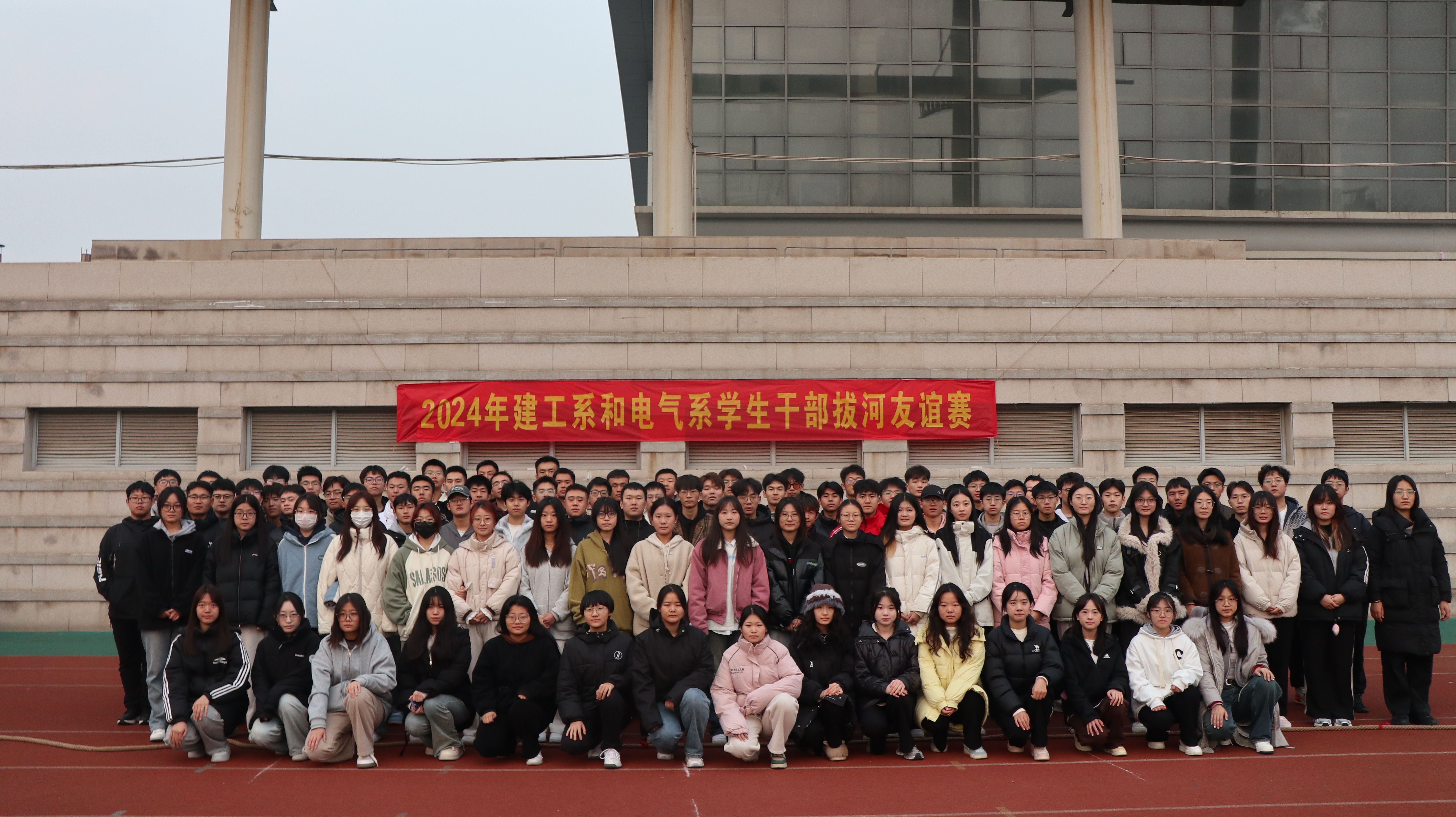 为加强系部学生骨干之间的交流,增强集体凝聚力和集体荣誉感,丰富校园文化,建筑工程系和电气工程系于11月8日早晨在东校区操场举行拔河友谊赛。建工系党总支刘志忠书记和电气系党总支黄涛副书记亲临活动现场为同学们加油鼓劲。