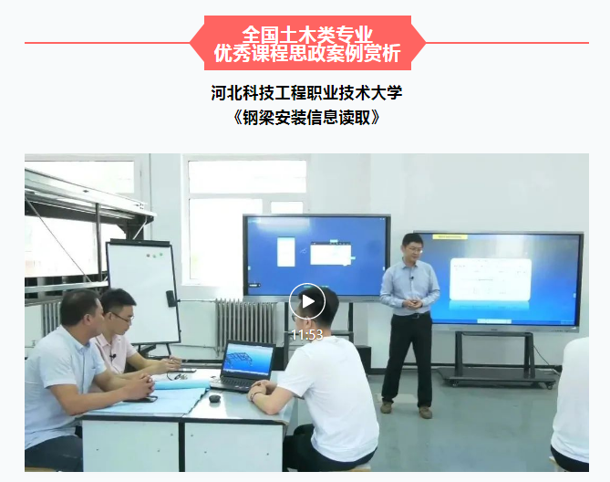 近日,我系《钢梁安装信息读取》、《智慧建造概论》2门课程的课程思政教学案例入选为全国土木类专业优秀课程思政案例,向全社会开放共享,引起广泛良好反响。我系将继续加强与各主流媒体进行交流,从学院、学科、专业等层面,成体系宣传best365课程思政建设情况。